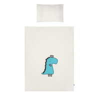 Otroška 6-delna posteljnina Belisima Dino 3D za dojenčke. Posteljnina je okrašena z 3D vzorom. Narejena je iz mehkega, prijetnega materiala. Sestava: zgornja stran: 50% bombaž, 50% poliester. Spodnja stran: 100% bombaž. Set vključuje prevleko za blazino cca 40x60 cm, prevleko za odejo cca 100x135 cm, zaščitno ograjo cca 180 cm, polnilo: blazino, odejo in baldahin. Baldahin: 150x200 cm.