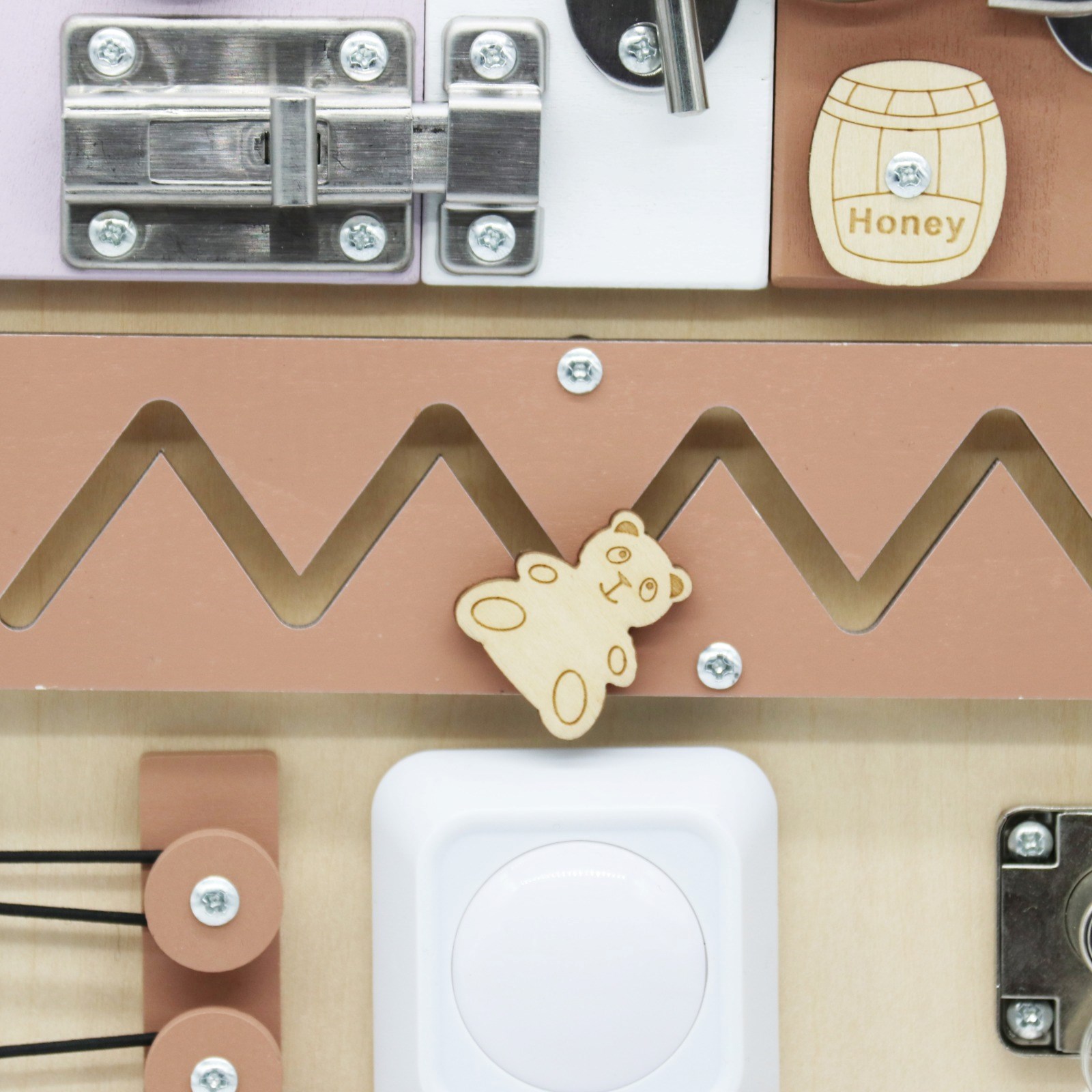 Dřevěná manipulační tabule Busy Board medvídek 10v1
