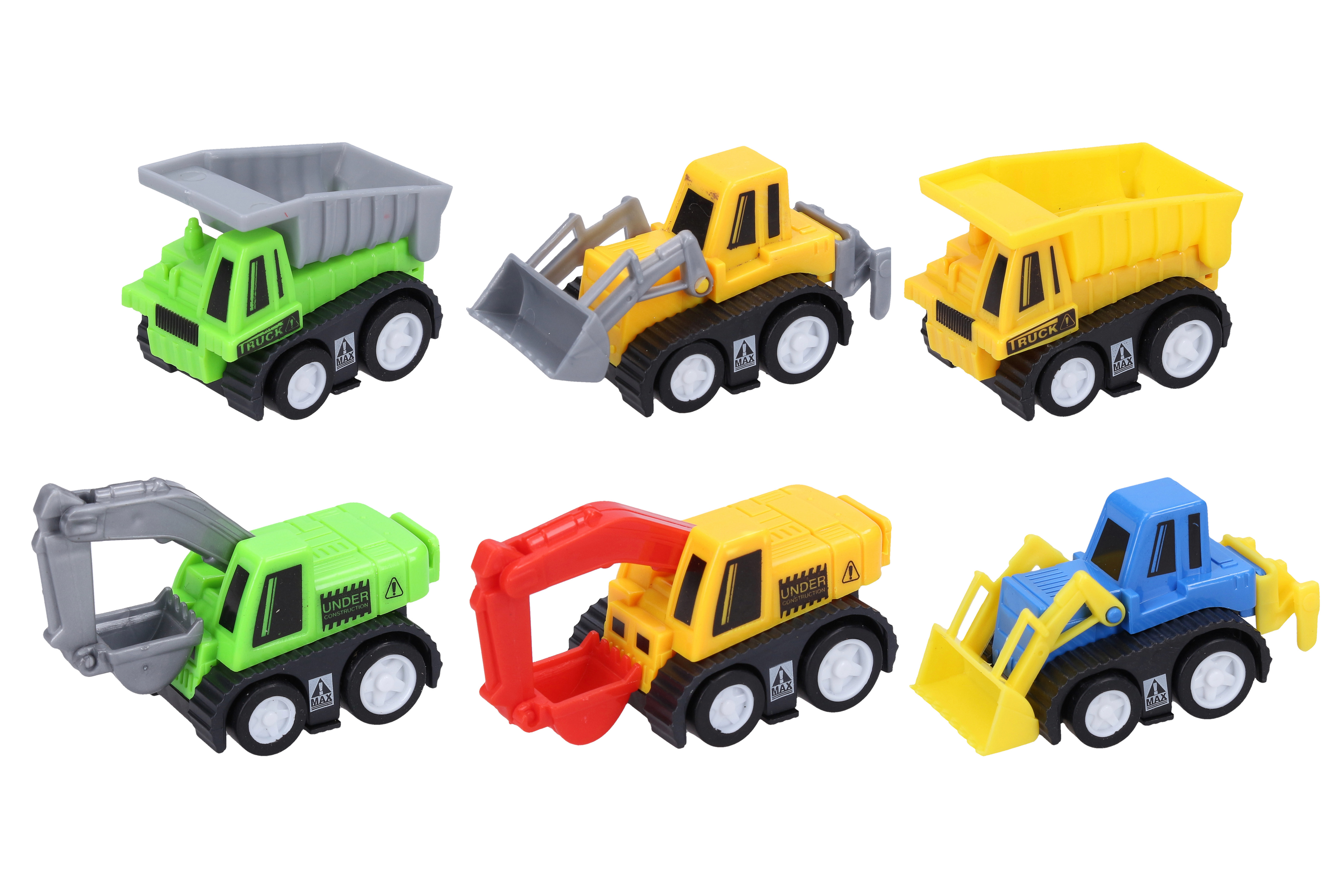 Plastová autíčka na zpětné natažení potěší všechny malé stavitele! Práce na stavbě s těmito malými pomocníky půjde raz dva!