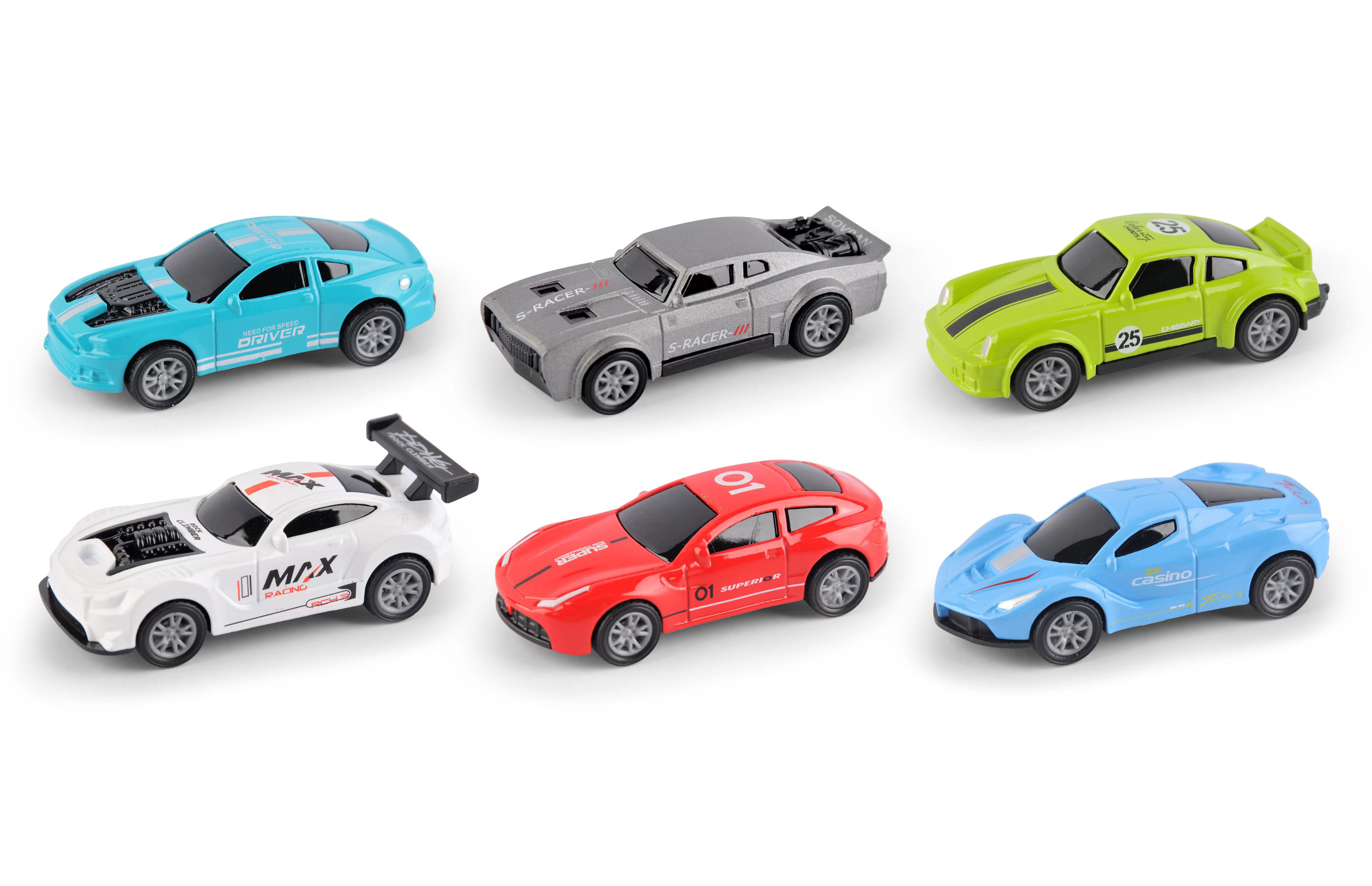 Auta závodní kovová 4 ks. Rozměry auta 7,5x3,2x2,5 cm. Balení obsahuje 4 ks. Volná kola. Více variant.