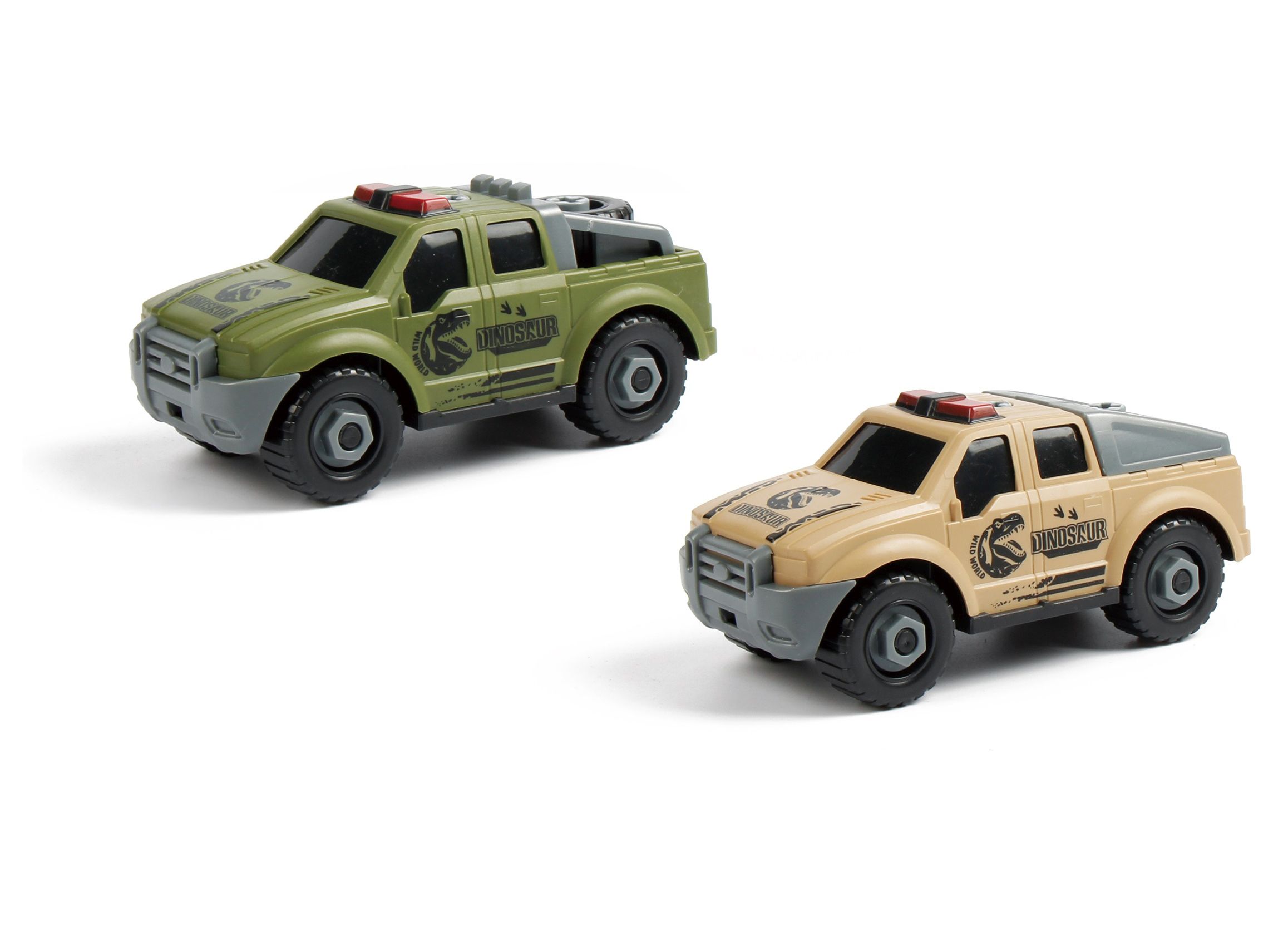 Auto šroubovací dino průvodce. Rozměry auta 7,6x16x6,5 cm. 2 varianty - zelená, hnědá.