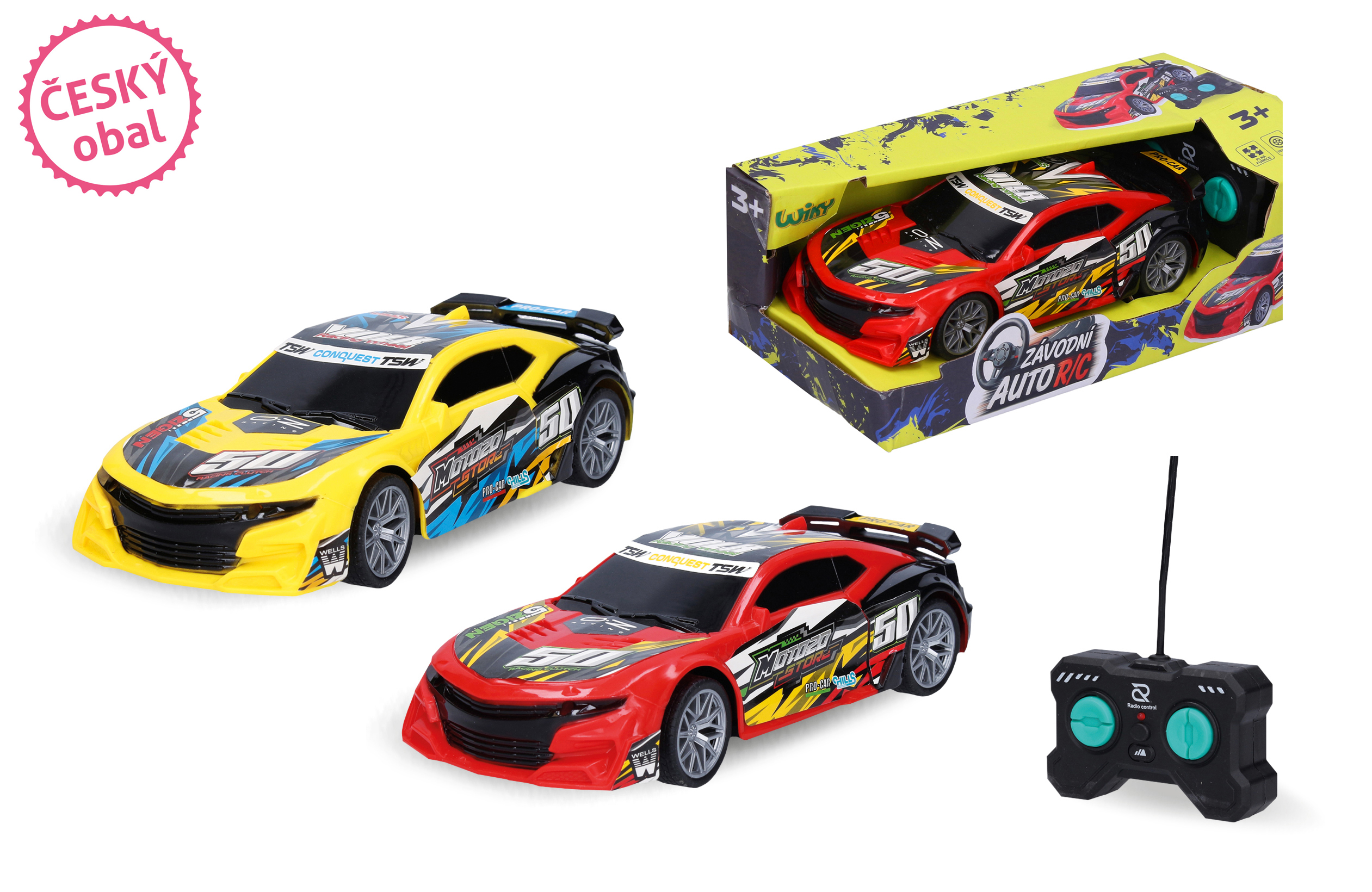 Auto Volk RC na dálkové ovládání. Rozměry 19x8x4,5 cm. Frekvence 27MHz a 80dbm. Světelné efekty. 3xAA baterie do auta, 2xAA do ovladače nejsou součástí. Přepínač ON/OFF na spodní straně obalu. 2 varianty - žlutá, červená.
