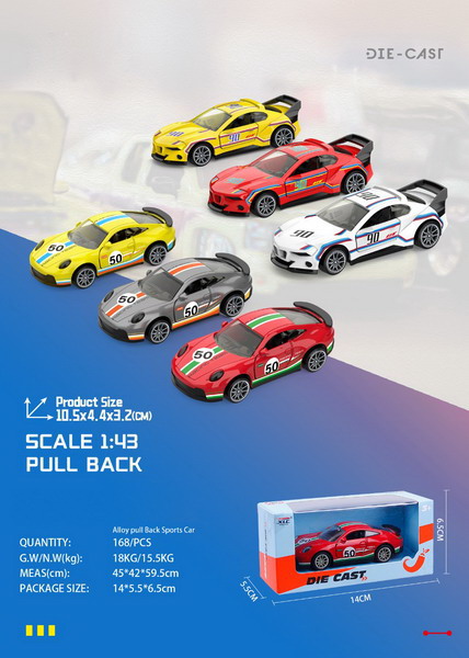 Auto závodní kovové. Rozměry 10,5x4,4x3,2 cm. Na zpětné natažení. 6 variant.