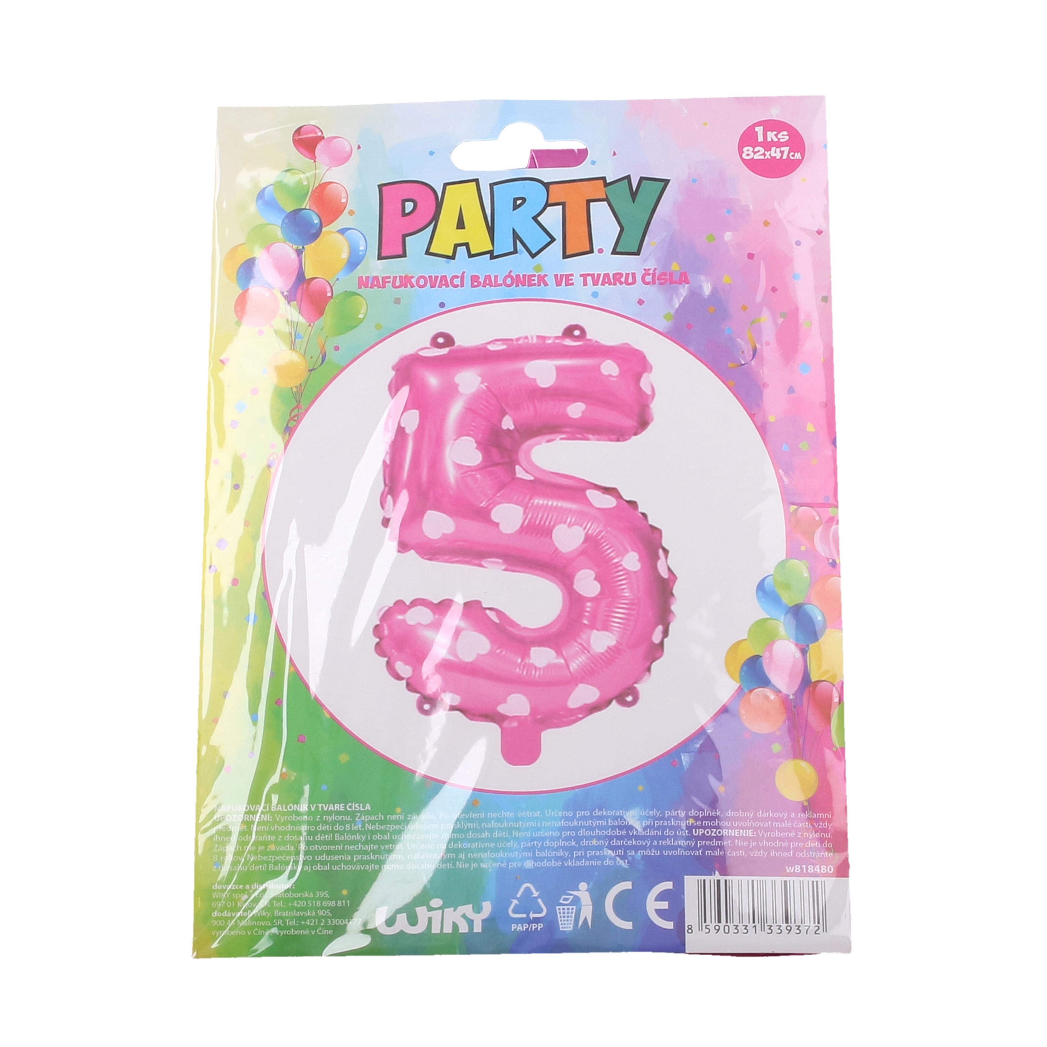 Růžový nafukovací balónek se srdíčky ve tvaru čísla je vhodný jako doplněk na narozeninovou párty! Rozměry: 82 x 47 cm