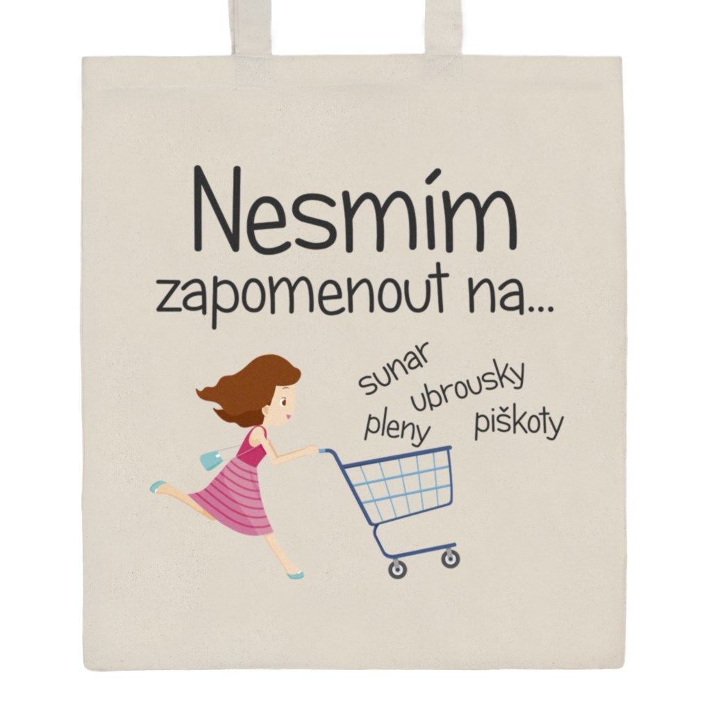 Krásná, pevná, vtipná a zároveň praktická bavlněná nákupní taška s potiskem New Baby. Tašku zdobí originální obrázek a nápis Nesmím zapomenou na.... Motiv je vytištěn kvalitním certifikovaným potiskem. Taška je ekologická, šetrná k přírodě, prostorná, hlavně praktická a v dnešní době čím dál více oblíbená. Je lehounká a dobře skladná. Složení: 100% bavlna. Rozměry: vxš cca 40x37 cm. Délka uší: cca 67 cm.