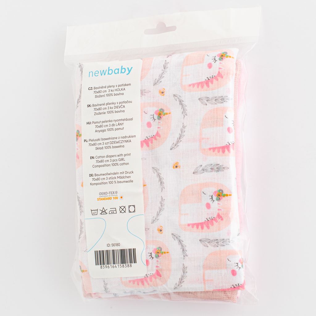 Bavlněné dětské pleny české značky New Baby ve zvýhodněné sadě, jsou nepostradatelnou součástí výbavičky pro miminko. Balení obsahuje 3 ks. Dvě plenky s obrázky a jedna jednobarevná. Vhodně zvolené barvy a obrázky pro holčičky. Plenky jsou vyrobeny ze 100% bavlny. Jsou hygienické, nezpůsobují alergickou reakci a napomáhají zdravému vývoji kyčelních kloubů u novorozenců. Můžete je využívat nejen pro přebalování ale i pod hlavičku miminka v postýlce či kočárku. Vysoká kvalita zpracování.