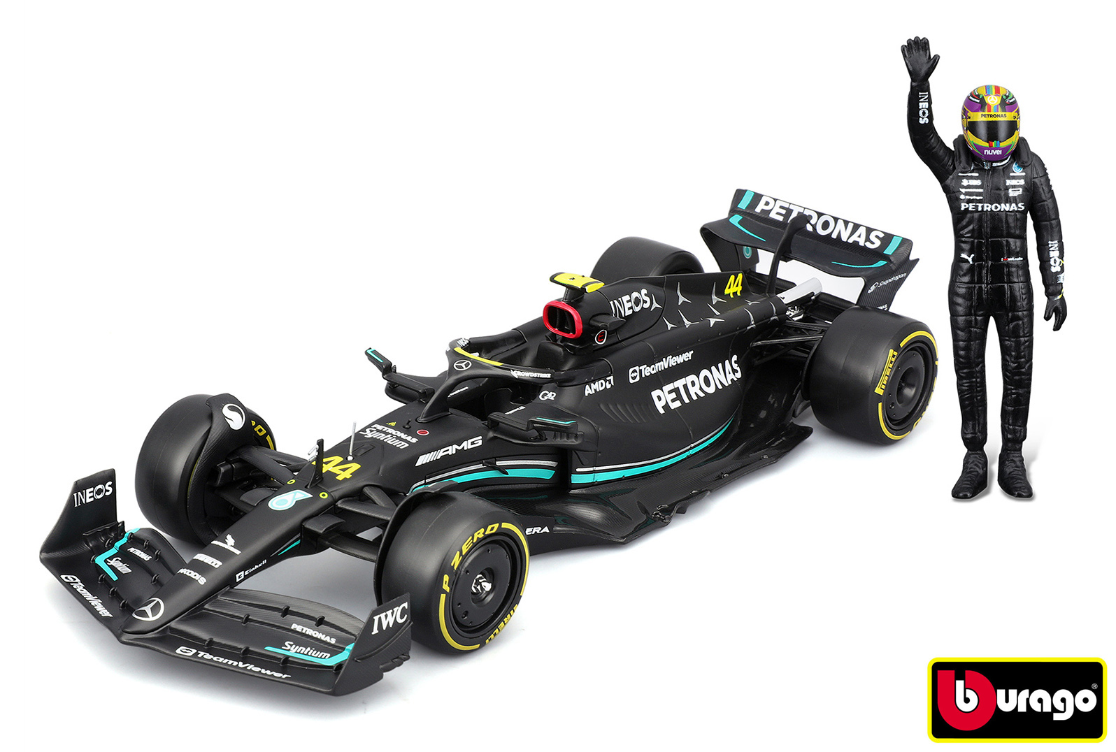 Bburago 1:24 RACE Formula F1 - Mercedes-AMG F1 W14 E (2023) #44 Lewis Hamilton with driver and decorative box