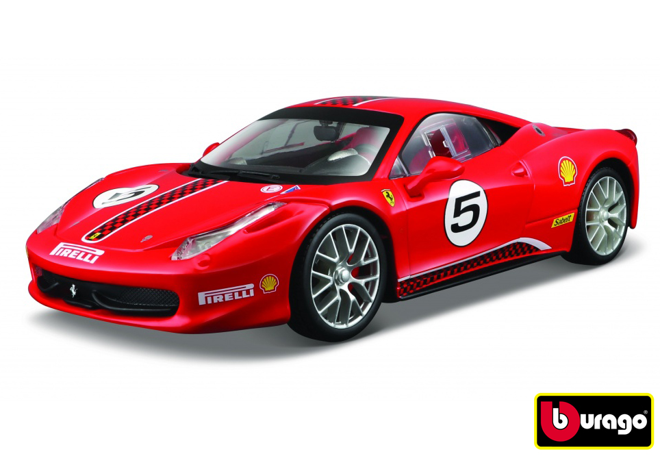 Kovový model auta 1:24 Bburago 18-26302 Ferrari 458 Challenge nejen pro sběratele. Má otevírací kapotu, natáčení kol volantem je plně funkční. Barva modelu je červená.
