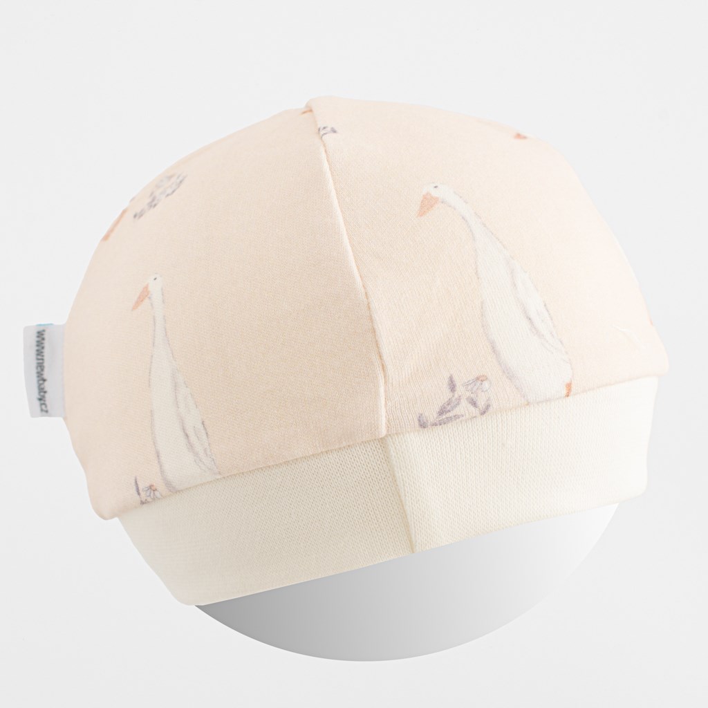 Lepa in praktična bombažna kapica za dojenčke češke blagovne znamke New Baby Husičky. Čudovita otroška motivacija z ljubkimi gosi, ki bo razveselila otroške oči. Kapica ima širok, elastičen rob, ki ne pritiska in bo dobro držala na glavici dojenčka. Je zelo kakovostna, prijetna, mehka, elastična in zato zelo primerna za vse dojenčke. Sestava: 100% bombaž. OEKO-TEX STANDARD 100.