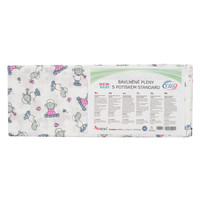 Cenovno ugodna pakiranja. Čudovit set 10 plenic za dojenčke. Klasične bombažne otroške plenice z veselimi slikicami. Plenice so izdelane iz vpojnega bombaža, mogoče jih je uporabiti tudi kot brisačo ali podlogo pod dojenčkom. Plenice imajo dva robova zašita in dva tkana, zaradi česar ne grozi niti raztrganje pri daljši uporabi, plenice pa bolje obdržijo obliko. V pakiranju je 10 kosov. Dimenzija 58x78 cm. Sestava 100% bombaž. Barve in slikice se razlikujejo glede na trenutno ponudbo.
