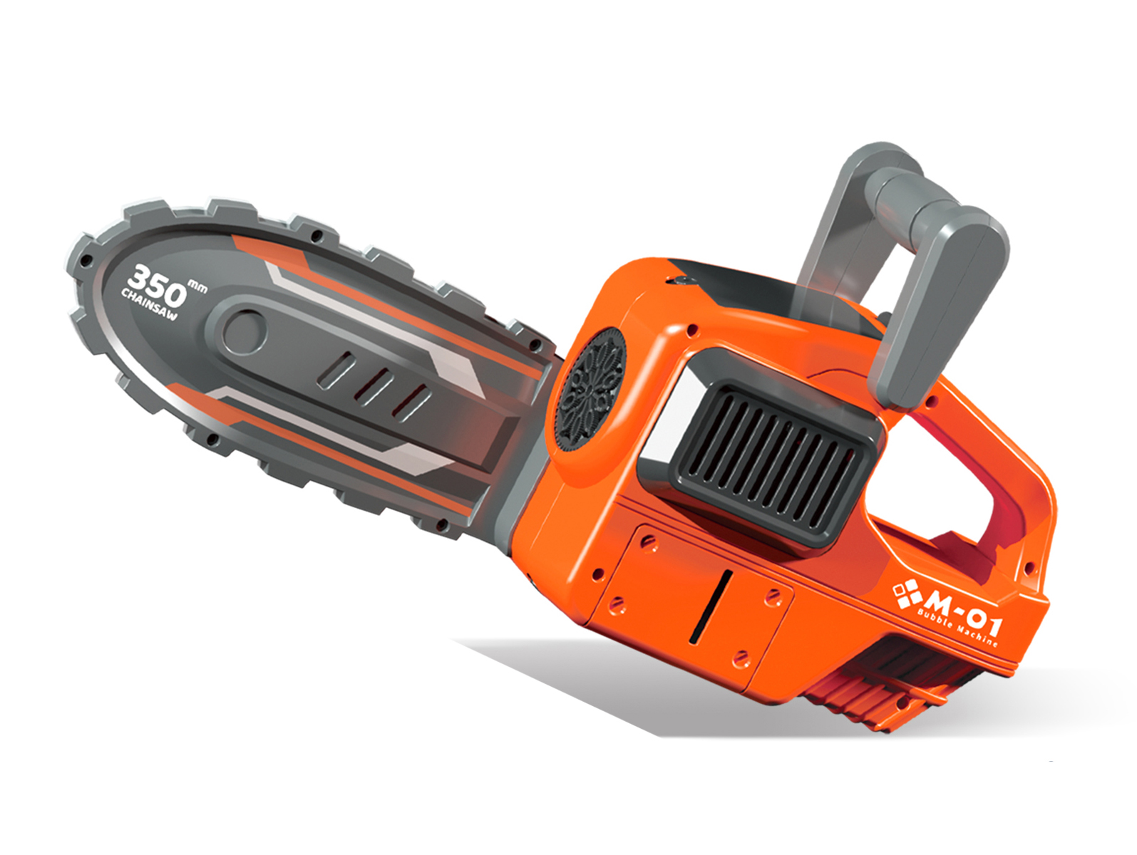 Bublinkovač motorová pila. Vydává světelné efekty. Velikost 35 cm. Aktivace tlačítkem u rukojeti. Přesné rozměry 35x9,5x18,6 cm. Baterie 4xAA, nejsou součástí balení.
