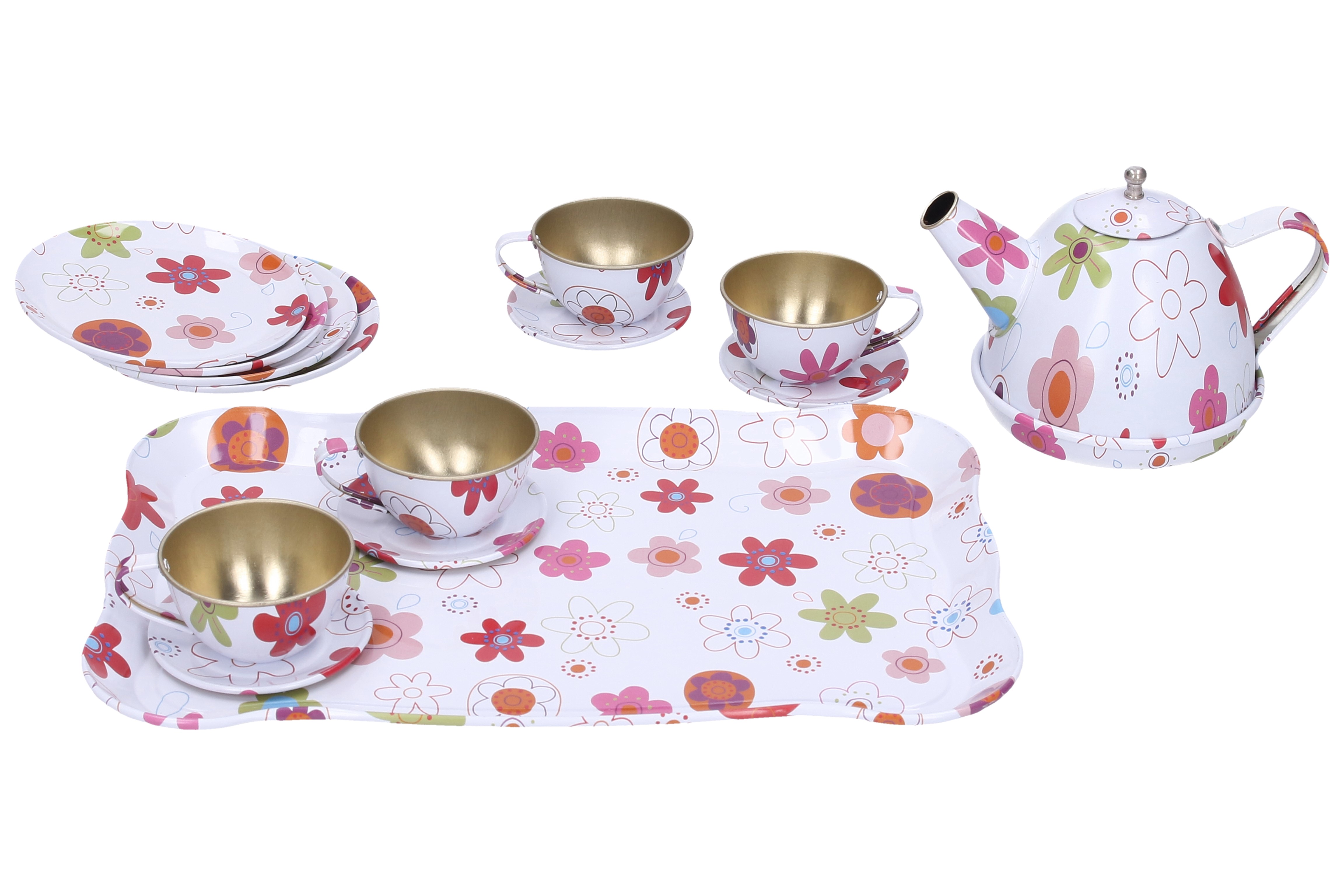 Pozvi kamarádky na čaj a užijte si chvilku klidu na pikniku s malovaným čajovým setem. Balení obsahuje 1 x konvičku, 4 x malý talířek, 4 x tácek, 4 x čajový šálek. Materiál kov.