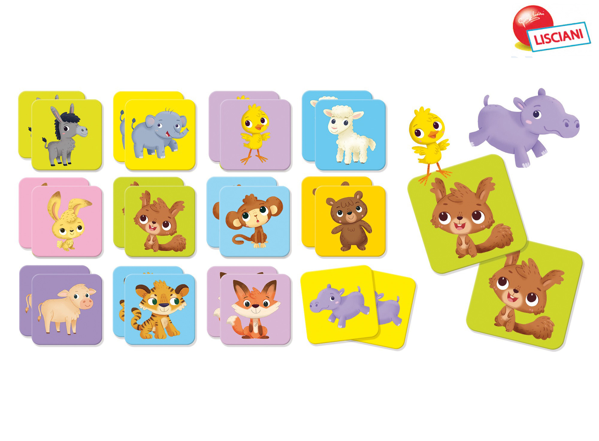Liscniani Pexeso s mláďátky. 24 kartonových kartiček mláďaty zvířátek, 12 párů.