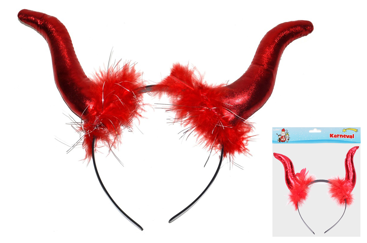 Čelenka čertovy rohy s péřovou aplikací.