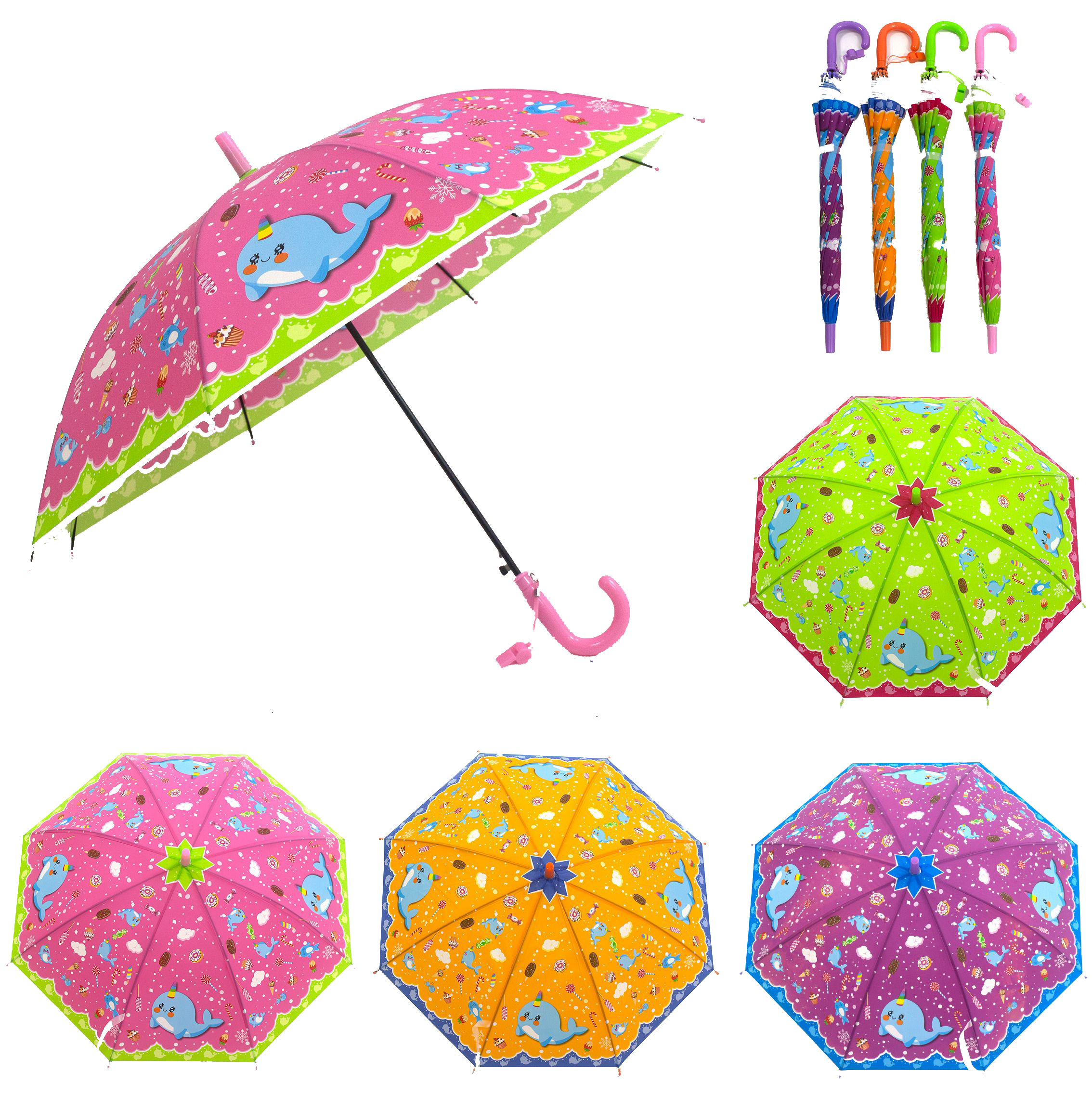 Deštník delfín. Délka 50 cm. 4 varianty - růžová, fialová, oranžová, zelená.