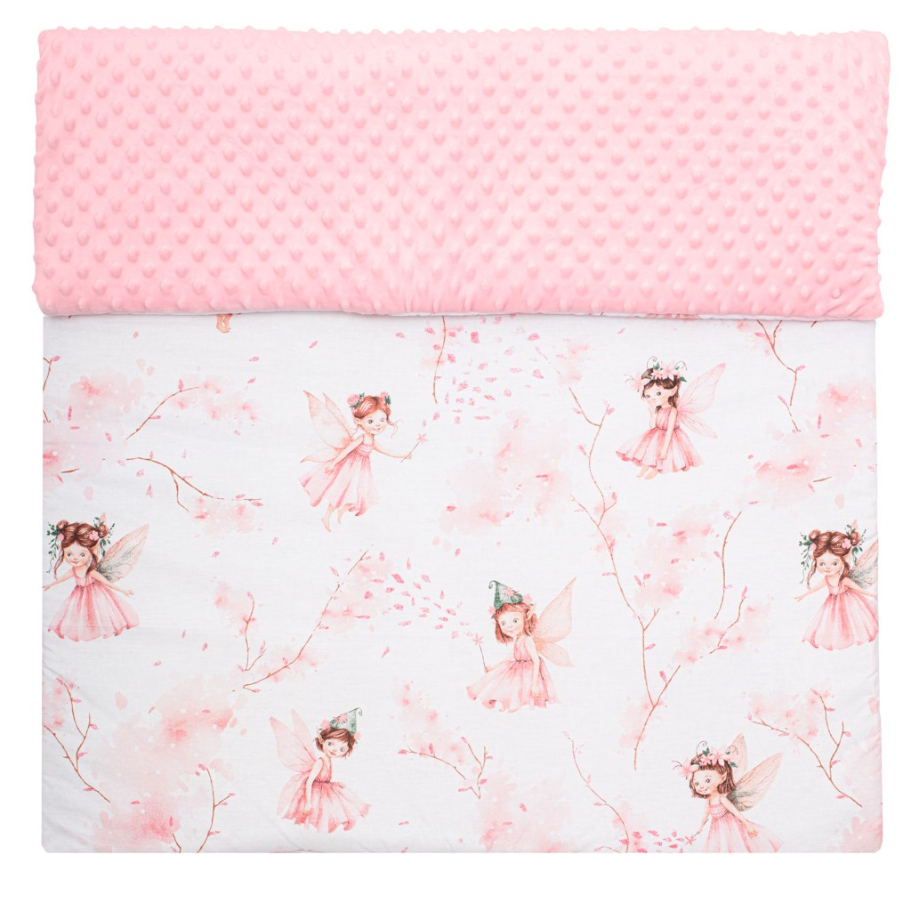 Dětská deka české značky New Baby Víly je vyrobena ze dvou typů tkanin. První je velmi měkká a na dotek příjemná, hebká Minky látka s výstupky pro stimulaci senzomotoriky a druhá je 100% bavlna s originálními obrázky a vzory, které pomáhají dětem učit se nové věci a rozvíjet jejich fantazii. Deka je hrubší a teplejší díky výplni s antialergickým vláknem. Je ideální jak pro miminka od narození, tak pro větší děti. Deku můžete používat jak doma, tak venku, v kočárku, postýlce, autosedačce či jako hrací deku. Je vyrobena z velmi kvalitního materiálu, který nepouští barvu a nevyvolává alergické reakce.