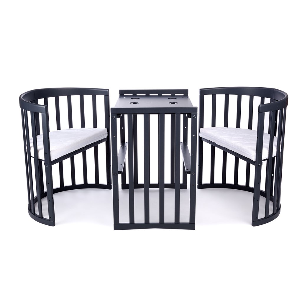 Dětská rostoucí postýlka 7v1 bude dobře sloužit i jako místo ke studiu nebo hraní. Vytvoříte s ním pohodlný set stůl + dvě židle. Výška sedáků i desky stolu je nastavitelná, což vám umožní připravit dokonalý dětský koutek. Pokud však vaše dítě chce stále spát ve své oblíbené postýlce, doporučujeme vám zakoupit nástavec na postýlku 7v1. V této konfiguraci s vámi tento kus nábytku zůstane i do 10 let věku vašeho dítěte.