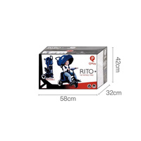 RITO PLUS je stabilní a bezpečná, má moderní design a pohodlně tvarované sedadlo. Tříkolka je vybavena bezpečnostní bariérkou, která nedovolí aby dítěvypadlo, pětibodovým bezpečnostním pásem, opěrkami nohou. Pěnová kola zajišťují tichou a pohodlnou jízdu. Po odstranění vodící tyče, bariérky, stříšky a potahu sedadla lze RITO PLUS používat jako klasickou tříkolku. Díky funkci "volné kolo a řídítka" může dítě volně šlapat a zatáčet, zatímco rodič má plnou kontrolu nad směrem a rychlostí jízdy. Kombinace kovové konstrukce, pěnových kol EVA a kvalitních plastů zaručuje odolnost a pohodlí.