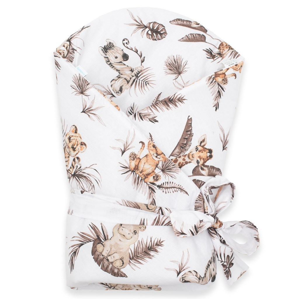 Nádherná dětská zavinovačka české značky New Baby Safari pro miminka. Zavinovačka je vyrobena z kvalitního a jemného materiálu, který zaručí vašemu miminku příjemné teplo. Výplň je až 3 cm co znamená, že zavinovačka je vhodná i na chladnější dny a je dostatečně pevná. Krásný dětský motiv, polahodí dětským očičkám. Zapínání na suchý zip i pásek na zavázaní na mašli.