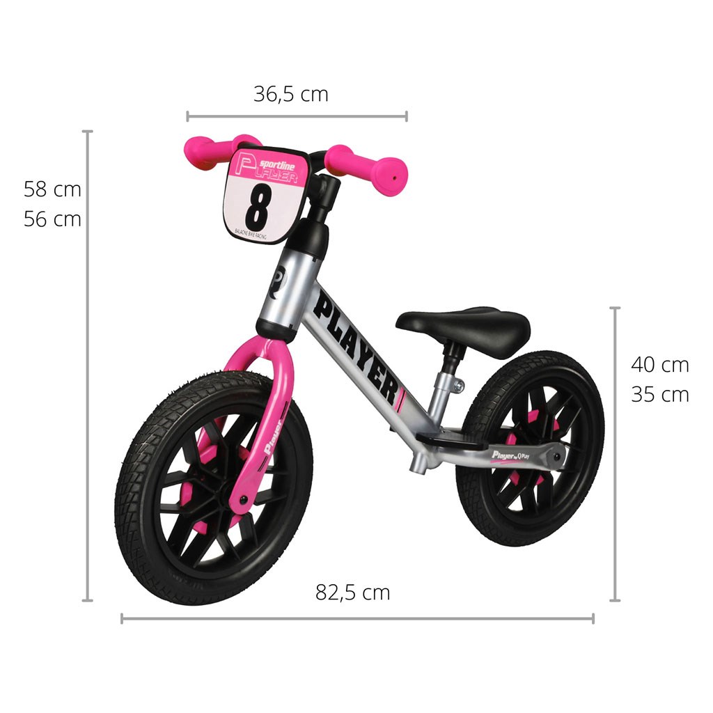 Balanční kolo PLAYER má jedinečný rám a nastavitelné polstrované sedadlo, které se přizpůsobí vašemu dítěti. Ergonomický design, robustní kovový rám a gumové rukojeti řídítek zajistí, že děti budou mít při hře pevný úchop a tím získá jistotu. Pneumatiky EVA o průměru 12" použité na kole zajistí stabilitu a bezpečnost na všech typech silnic. Kolo Qplay PLAYER usnadní přechod k jízdě na kole bez bočních koleček.