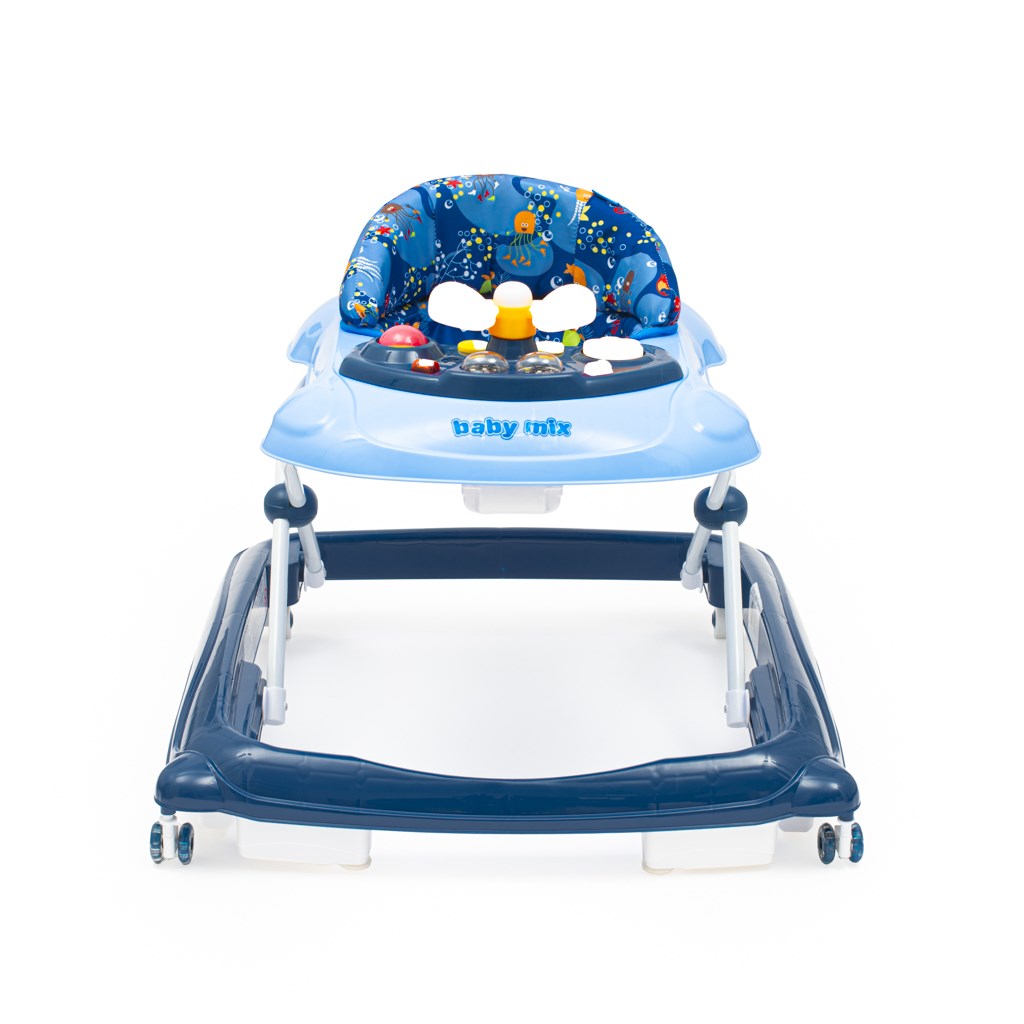 Moderní chodítko Baby Mix je skvělým pomocníkem při prvních krůčcích dítěte. Nabízí maximální pohodlí, zábavu a bezpečnost. Díky ergonomicky tvarovanému sedadlu podporuje správné držení těla, zatímco multimediální panel se světelnými a zvukovými efekty dítě motivuje k pohybu i hře.