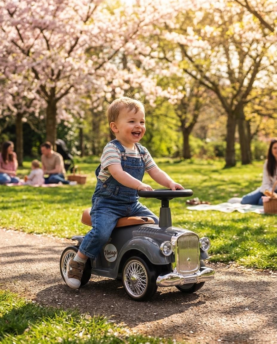 Dětské odrážedlo Retro zve malé cestovatele na retro jízdu. Upoutá svými oku lahodícími barvami. Je bohatě vybaveno. Toto autíčko má volant se zvukem a tvarované sedadlo. Poskytne vašemu dítěti skvělou zábavu při řízení a rozvíjí jeho smysl pro rovnováhu a všeobecné motorické dovednosti. Autíčko má lehkou plastovou konstrukci a ergonomické tvary. Otočný volant autíčka Retro umožňuje náročné manévry doma i na procházkách. Kola tohoto krásného vozidla jsou vyrobena z měkké pěny EVA. Retro autíčko může vaše dítě používat jako své první vozidlo s opravdovým volantem a klaksonem, dále jako kočárek s otevřeným úložným prostorem na hračky (malý kufr), imitací palivové nádrže na zadní části vozidla a přední částí auta - mřížkou ve stříbrné barvě. Vozítko Royce je určeno všem dětem, které umí samostatně sedět. Vozítko lze používat v interiéru i exteriéru a zpříjemní vašemu dítěti čas strávený na procházce.