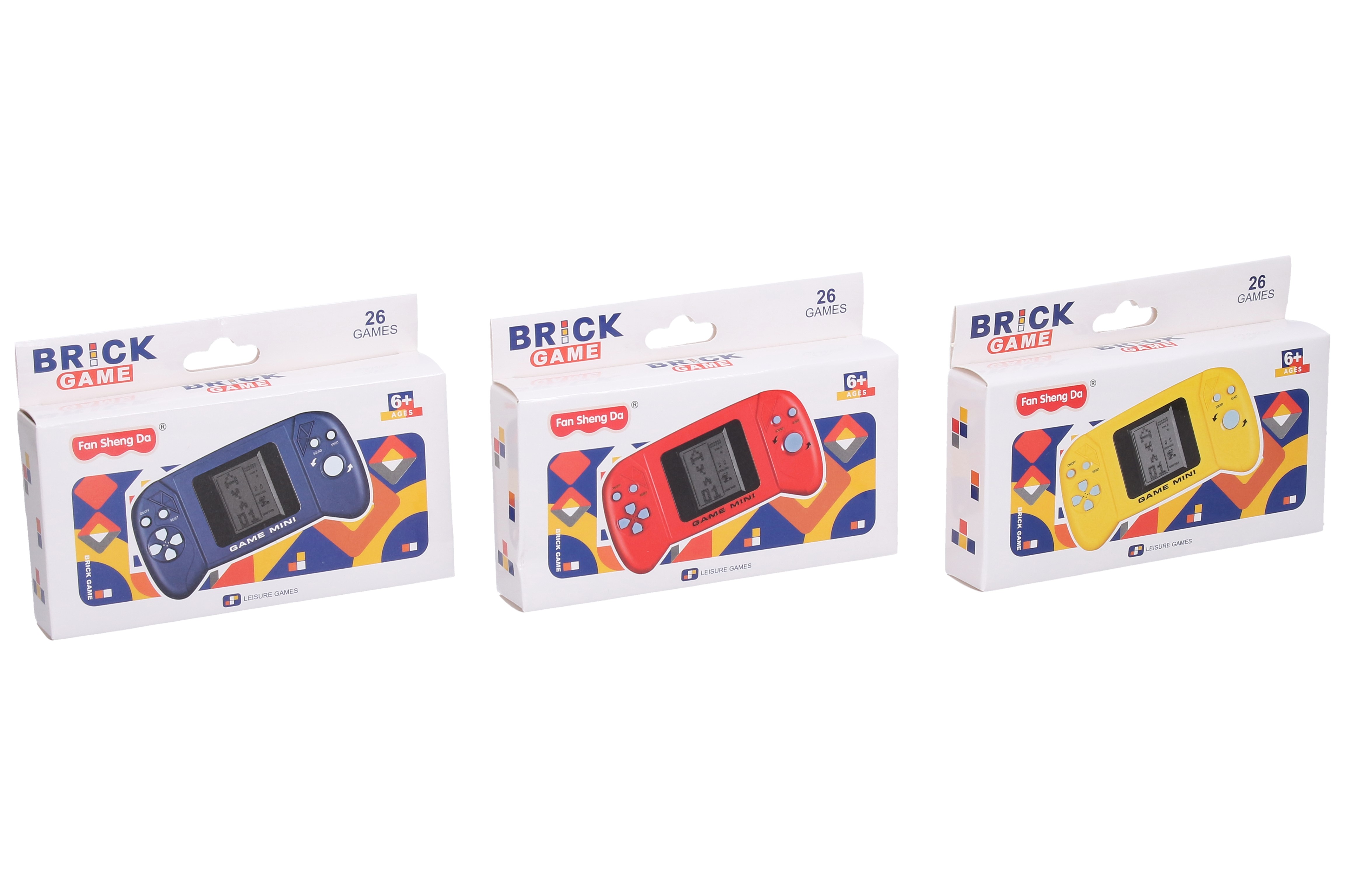 Digitální herní konzole 26 her. Rozměry konzole 14x7,5 cm, rozměry displeje 2,7x3,7 cm. 2xAAA baterie nejsou součástí. Obrázkový návod s popisem na zadní straně obalu. 12 ks display box. 3 varianty - modrá, červená, žlutá.