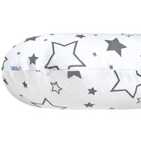 Dojenje blazina New Baby za udobno namestitev dojenčka med dojenjem. Ščiti hrbtenico matere pred preobremenitvijo in preprečuje bolečine v hrbtu. Material: prevleka – 100% bombaž, polnilo – 100% poliester. Dolžina po obsegu približno 125 cm, premer približno 16 cm. Blazina ima snemljivo prevleko.