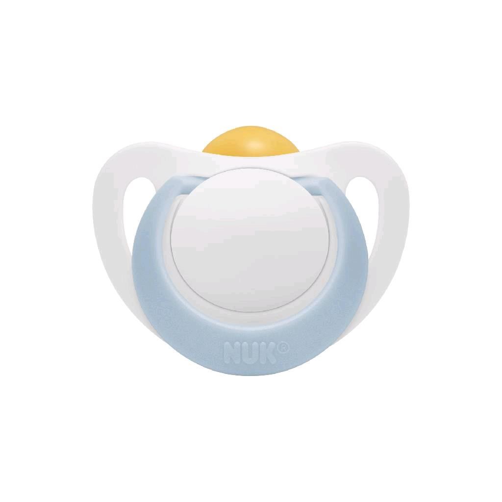 Dojenčki lateks cuclj NUK Star 0-6 mesecev. Praktičen obroček na cuclju je izdelan iz visoko kakovostnega polipropilena in ga enostavno zagrabijo tudi najmajše ročice. Cuclj NUK Star je v ustih dojenčka resnično mehak. Še posebej mehak del na zgornji strani cuclja (predel s tanjšim slojem silikona) se še bolj udobno pritisne k nebu. Hkrati spodnja stran cuclja NUK Star omogoča dovolj prostora za naravne sesalne gibe jezika. Primeren za praviln razvoj čeljusti in še posebej prijazen med dojenjem - enostavno izmenjuje med dojenjem in pomirjanjem s cucljem. Prosojen silikonski material se enostavno čisti in je še posebej odporen na toploto. Ne vsebuje škodljivih snovi, je odporen na vrenje, brez vonja, prozoren in ima gladko površino. Vsi cuclji NUK imajo air-system NUK, ki omogoča, da lahko nežna koža dojenčka diha. Velikost 1 (0-6 mesecev). Vsi NUK cuclji so redno testirani in spremljani s strani neodvisnih inštitutov. Pakirano v škatli brez vsebnosti BPA.