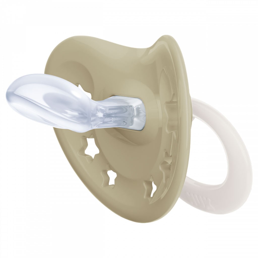 Dojenčka sesek NUK Signature 6-18 mesecev. Ortodontska oblika podpira razvoj celotne ustne votline otroka. Sesek je izboljšan in ima še bolj plosko obliko. Narejen je iz visokokakovostne plastike in silikonskega seska. In zdaj ima ta široko priljubljeni sesek čudovit nov videz – priljubljena okrogla oblika ustnega ščita v obliki srca in modni poudarek na ljubkem obročku. Zaradi tega bo malo obrazek izgledal še ljubkejše. Vsak nov sesek NUK dobite v trdni, ponovno uporabni škatlici, ki sesek ohranja čist. Škatlica je prav tako primerna za higienično čiščenje v mikrovalovni pečici. Ustni ščit in obroček sta izdelana iz polipropilena in ne vsebujeta BPA. Velikost 2 (6-18 mesecev). Vsi NUK seski so redno testirani in spremljani s strani neodvisnih inštitutov.