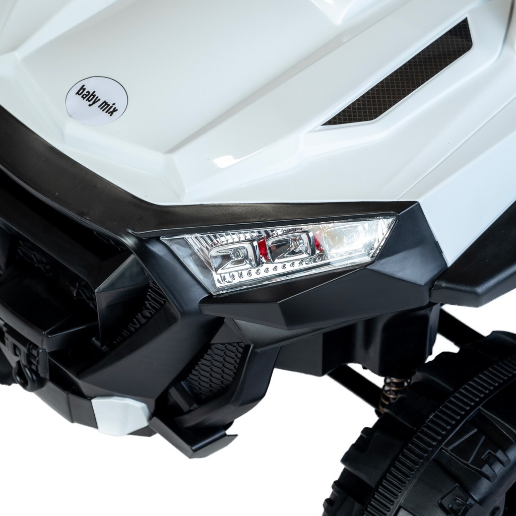 Otroška električna voziček Space Baby Mix je idealna za male pustolovce, ki obožujejo vožnjo v naravi in na vrtu. S pomočjo dveh zmogljivih motorjev 2×35 W voziček zlahka premaguje ne le ravne površine, temveč tudi lažje teren. Združuje sodoben futurističen dizajn s praktičnimi funkcijami, ki otrokom zagotavljajo zabavo, udobje in varnost.