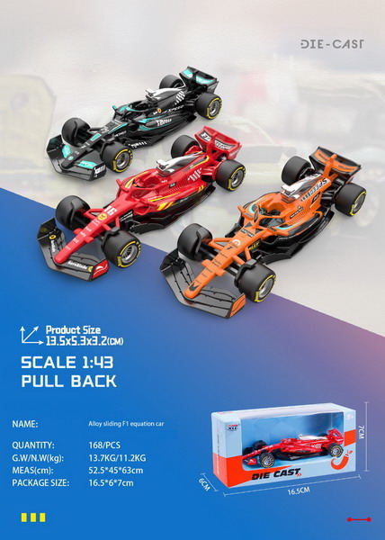 Formule kovová. Rozměry 13,5x5,3x3,2 cm. Volná kola. 3 varianty - červená, černá, oranžová.