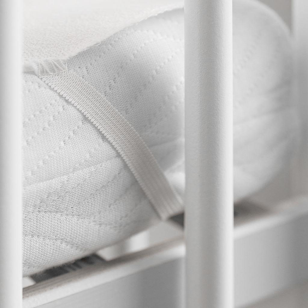 Frotirna nepremočljiva podloga New Baby 50x70 cm. Zgornja stran je izdelana iz mehke frotirne tkanine, ki preprečuje draženje kože. Spodnja stran je izdelana iz PVC. Zaradi te konstrukcije podloga ščiti vzmetnico pred vlago, kar zagotavlja zdrav in miren spanec otroka. Ne vsebuje ftalatov. Lahko se uporablja kot zaščita za vzmetnice za otroke in odrasle, kot higienska podloga pod rjuho ter kot previjalna podloga. Priklop s pomočjo gumic na spodnji strani vzmetnice. Namenjena je večkratni uporabi, pranje je možno pri 60 stopinjah. Sestava: zgornja stran: 82% bombaž, 18% poliester, spodnja stran: 100% poliuretan. Ima zračen prevlek, ki absorbira vlago, je vodoodporna in deluje kot antialergijska bariera. OEKO-TEX STANDARD 100.