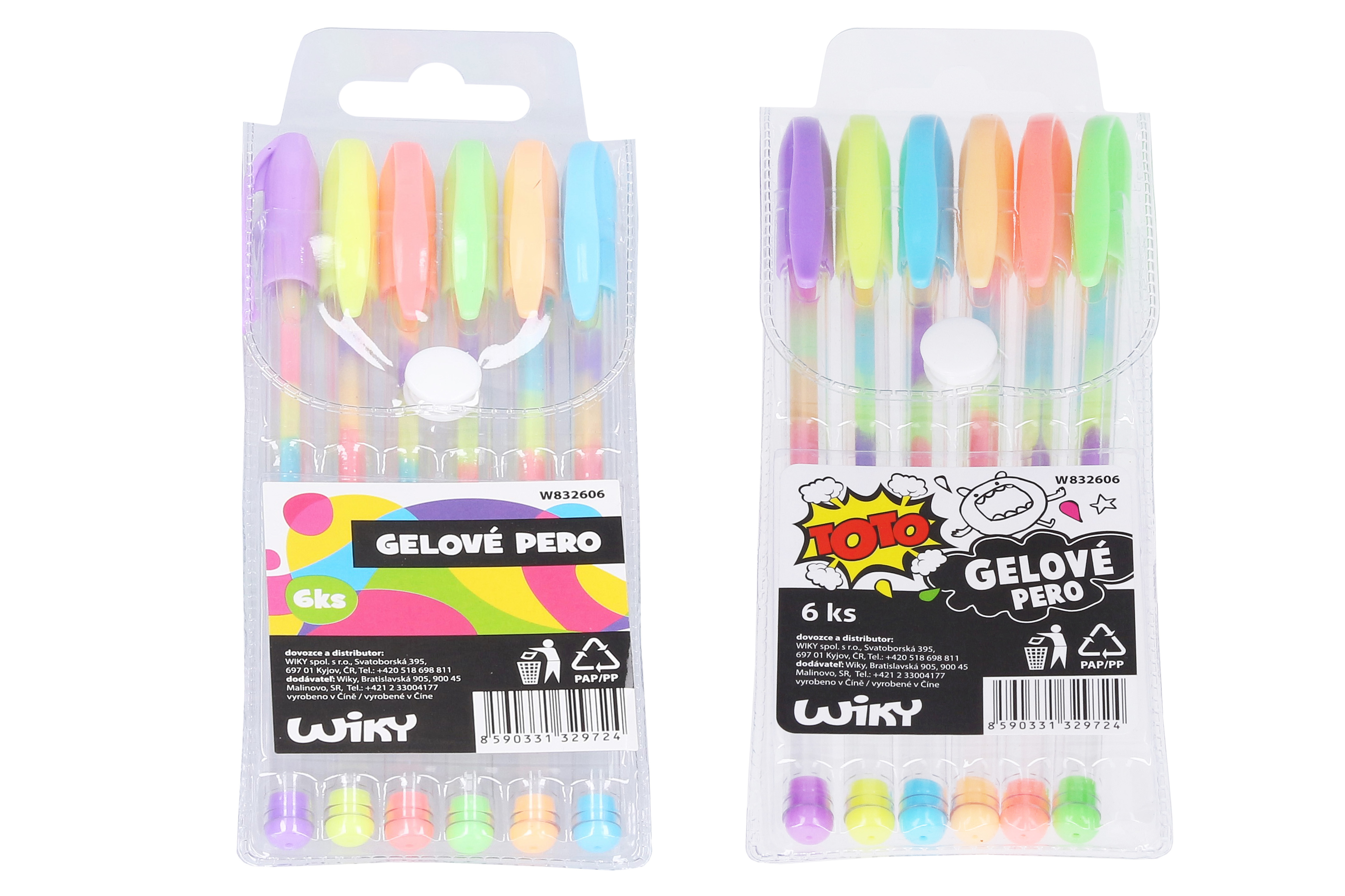 Sada gelových per. Průhledné kulaté tělo, koncovka a uzávěr v barvě náplně. Výrazně sytá reflexní stopa.