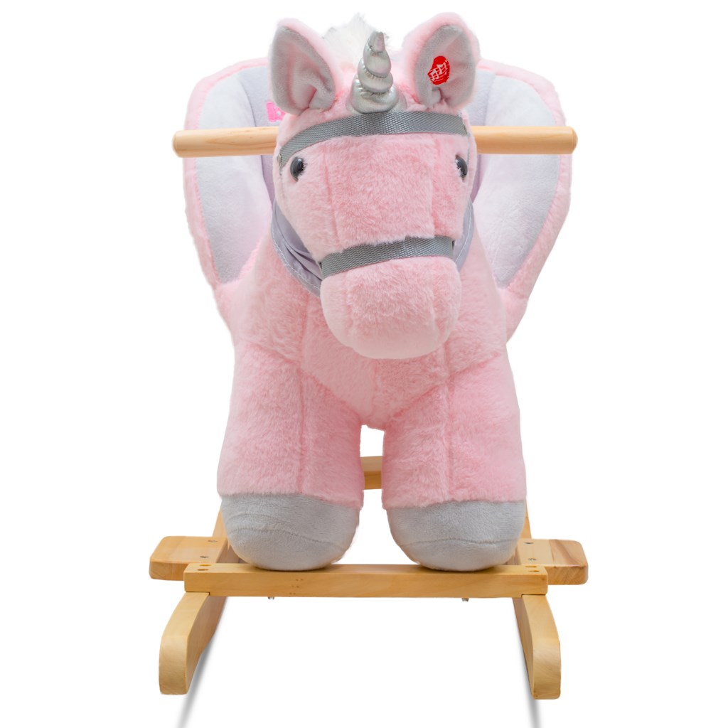 Rožnati nihanjski konjiček–enorožec blagovne znamke Baby Mix je izjemna igrača, ki očara vsako dete in postane njegov najboljši prijatelj za igro. Narejen je iz mehkega, prijetnega pliša in stoji na stabilnih lesenih drsnikih, kar zagotavlja varno in udobno igro.
