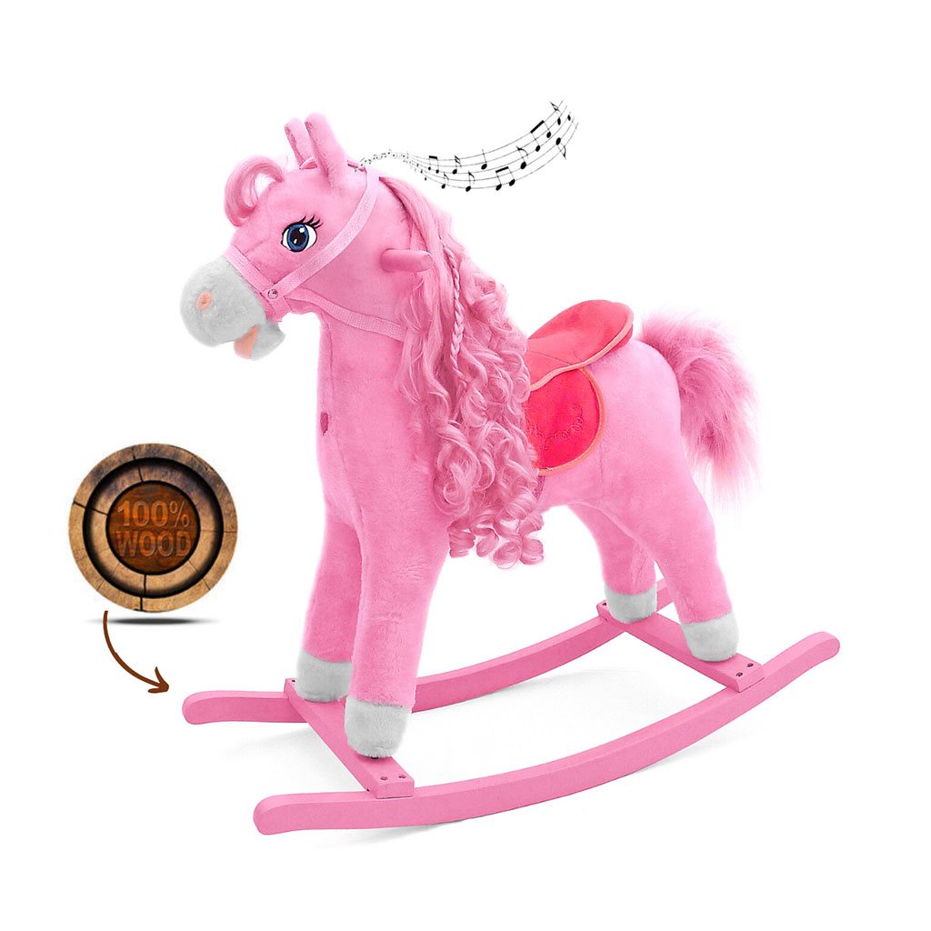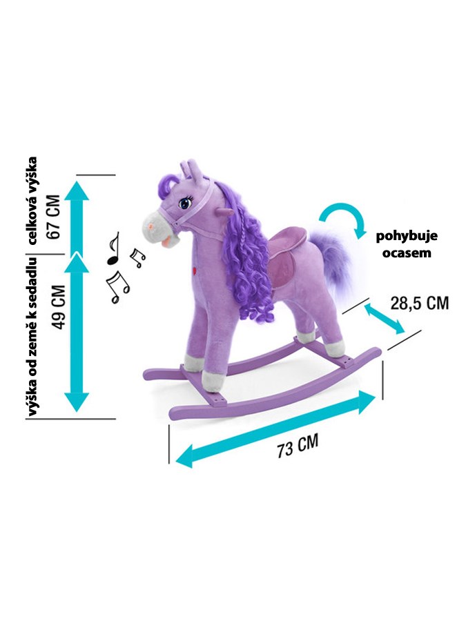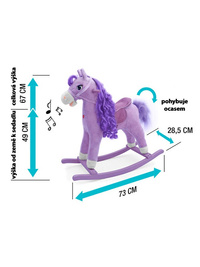 Neobičajno lep hkopijoči konjiček Milly Mally z mnogimi funkcijami. Po pritisku na ušesa konjiček premika rep in gobec ter oddaja zvoke. Izdelan je iz mehkega plišastega materiala, kar omogoča, da se vaše dete dolgo zabava. Igrača ima sedlo in leseni ročaji. Konjička je mogoče sneti z gugalnega okvirja in ga uporabiti kot samostojno plišasto igračo. Je pakiran v ločeni škatli, ki se lahko uporablja tudi kot darilna embalaža.