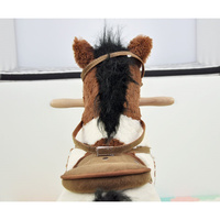 - konjček ima sedlo z oporami, uzdo in lesene ročaje