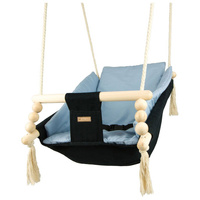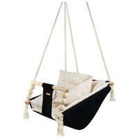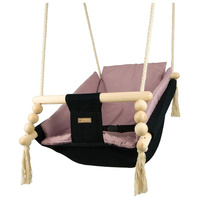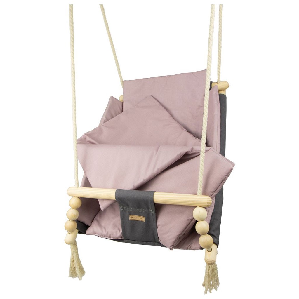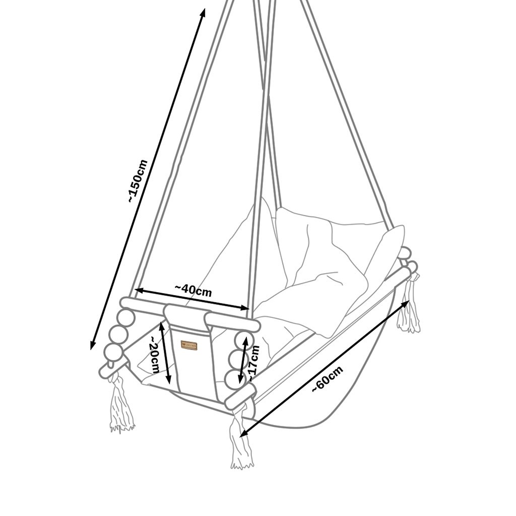 Zaradi uporabe prijetnega bombaža se tu otrok počuti prijetno, udobno in varno. Močna bombažna vrvica je opremljena s kovinskimi kolesi, ki omogočajo namestitev gugalnice tudi na teraso, verandu ali v vrt.