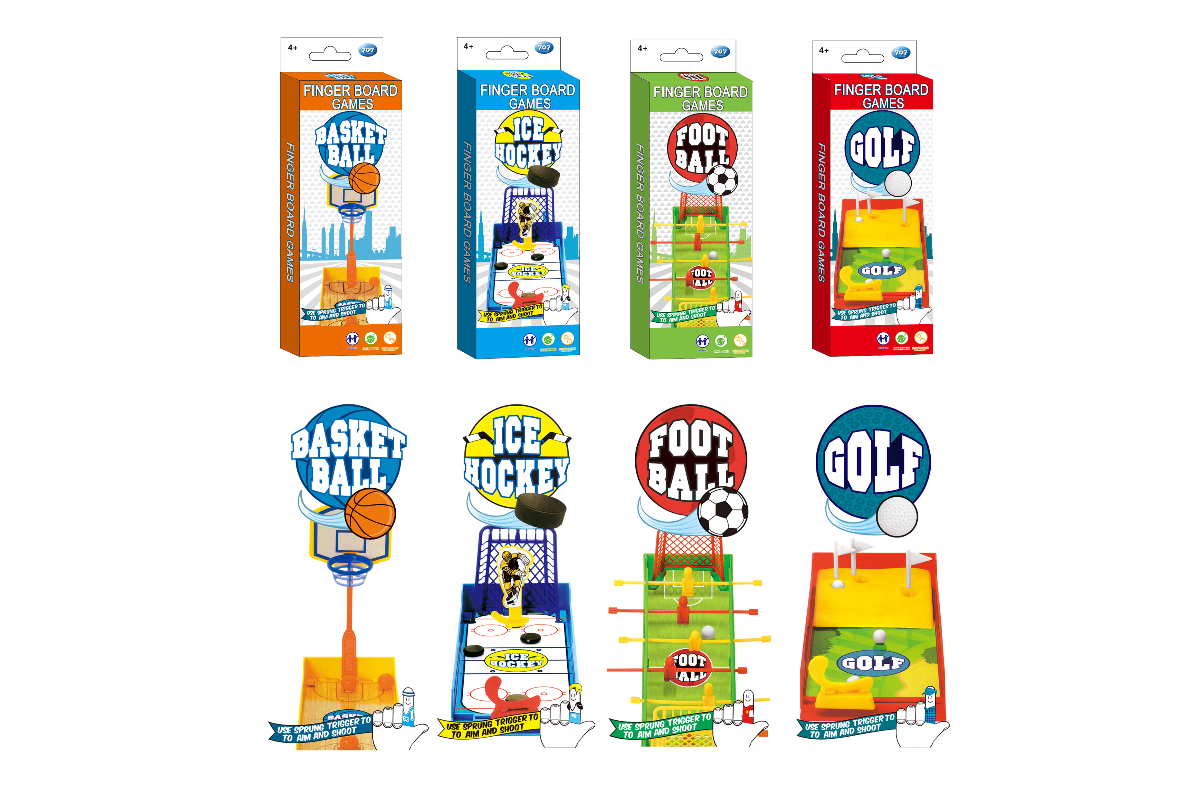 Malé sportovní deskové hry na cesty. Rozměry 20,5x7,5x2,3 cm. 4 varianty - hokej, fotbal, basketbal, golf.