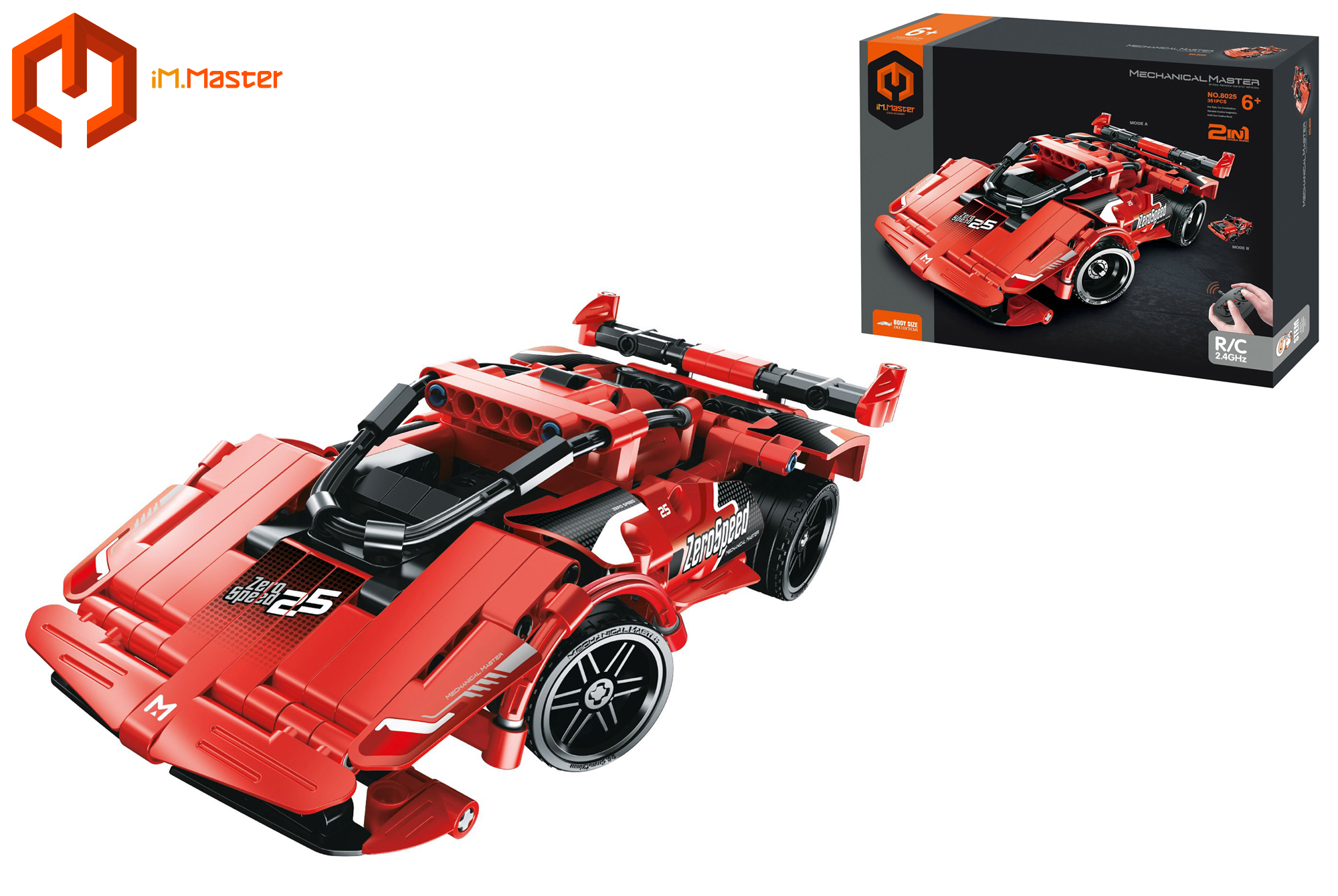iM.Master Stavebnice auto 2v1 RC na dálkové ovládání. Rozměry 24x10x7 cm. 351 dílků. Možnost sestavit závodní nebo terénní auto. Frekvence 2.4GHz. 3xAA baterie do auta, 3xAAA do ovladače nejsou součástí. Přepínač ON/OFF na spodní straně auta a na ovladači.