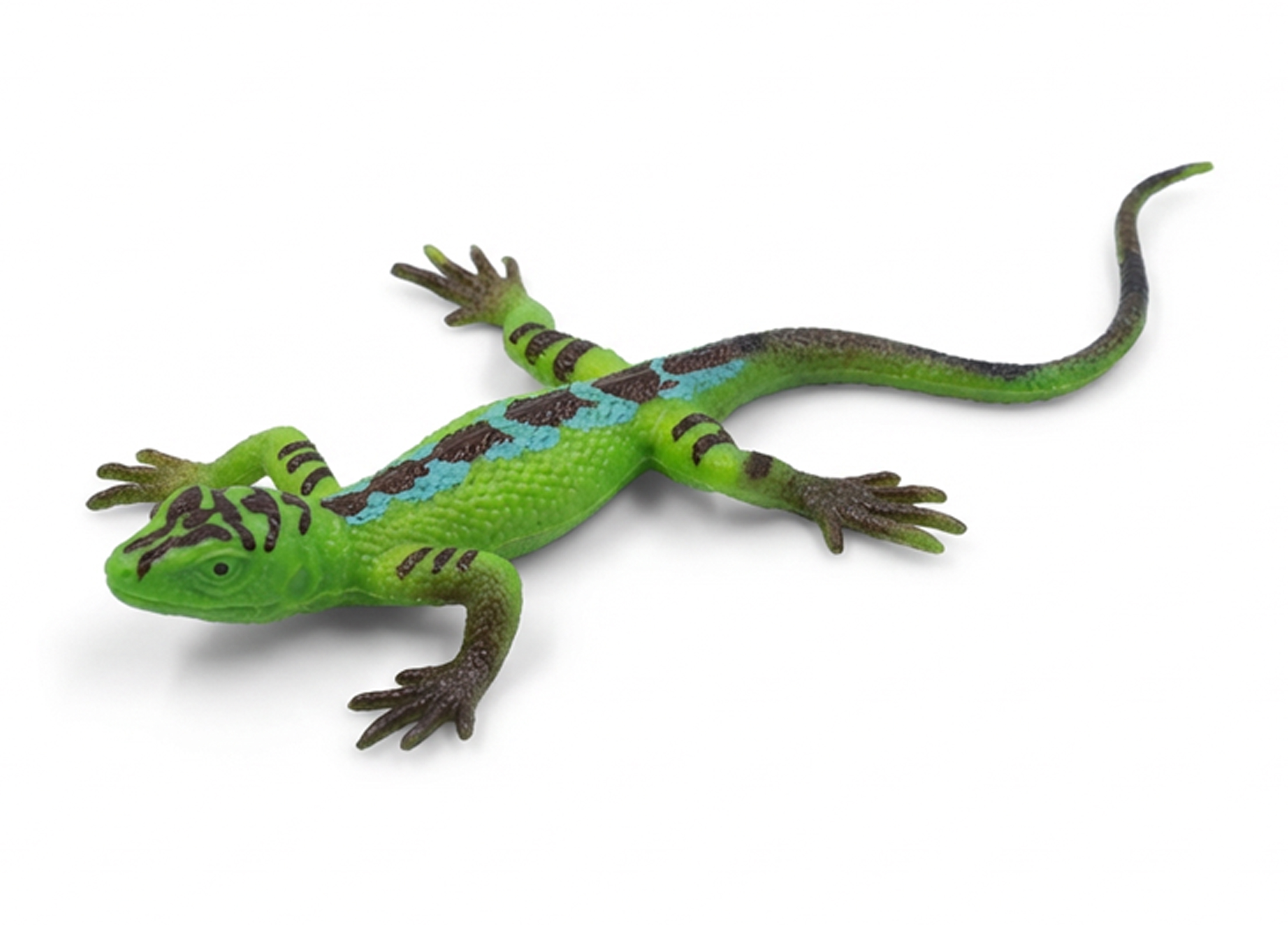 Ještěrka gumová zelená. Rozměry 17x8x2 cm.