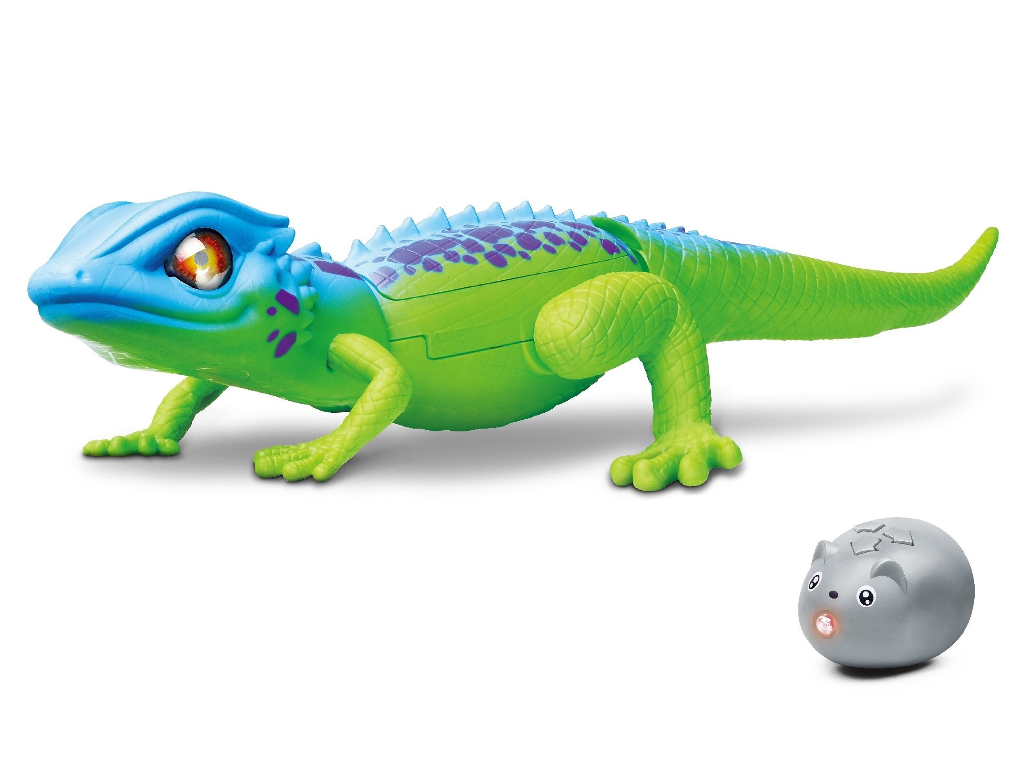 Ještěrka RC na dálkové ovládání. Délka 35 cm. I/R ovladač. Svítící oči. Pohyb dopředu a dozadu. Hýbe hlavou a ocasem. 2xAA pro ještěrku nejsou součástí, 3xAG13 pro ovladač součástí.