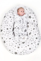 Čudovita mehka klasična vezana swaddle New Baby. Klasične swaddle se vračajo nazaj. Klasična swaddle vašemu dojenčku nudi občutek varnosti. V swaddle je veliko mirnejše, saj se počuti varno kot v maminih trebuhu. Swaddle lahko uporabimo za uspavanje dojenčkov, dojenje in v voziček. Swaddle se zavezuje s tremi vrstami trakov, ki vašega dojenčka trdno ovijejo.