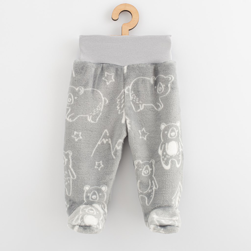 Čudovite otroške polodupačke češke blagovne znamke New Baby Winter times za dojenčke. Okrašene z ljubko sliko medvedka. Polodupačke so narejene iz toplega materiala, imenovanega Wellsoft, in so podložene z bombažno podlogo. Wellsoft je mehak, lahek in zelo prijeten na dotik ter nudi odlično toploto. V pasu imajo širok elastičen rob. Material: 100% poliester-wellsoft, podloga: 100% bombaž. OEKO-TEX STANDARD 100.