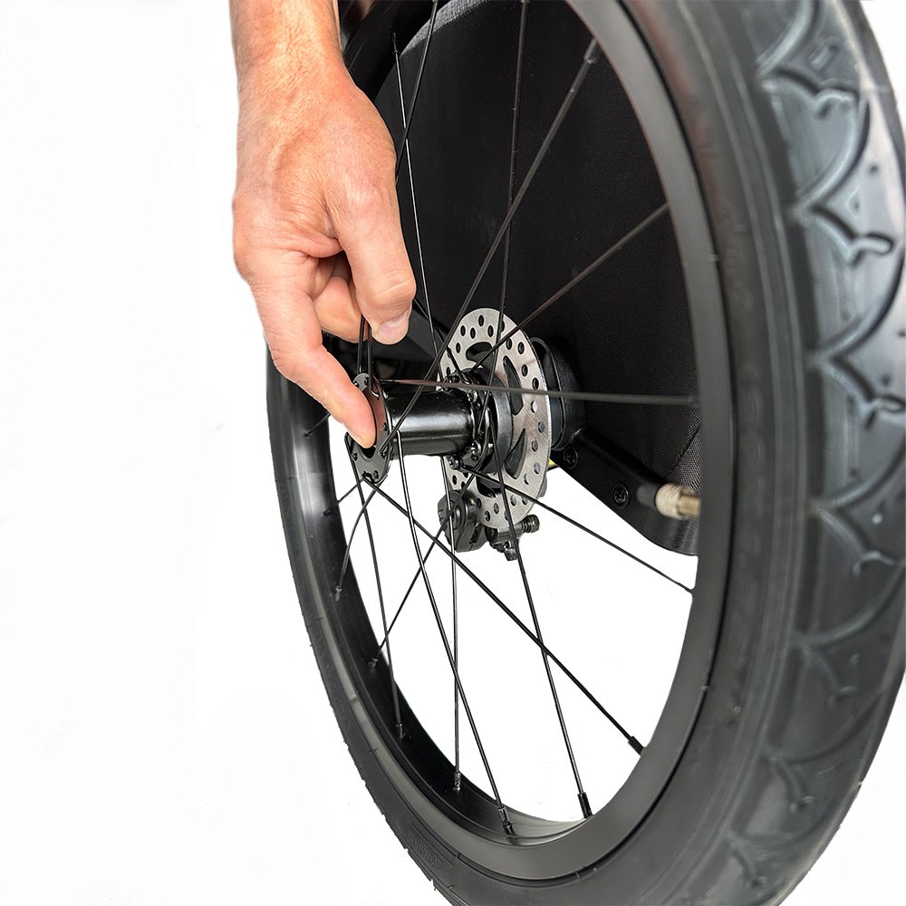 Varnostna zavora – disk zavora, ki jo upravljate z ročajem, zagotavlja varno vožnjo tudi pri teku.