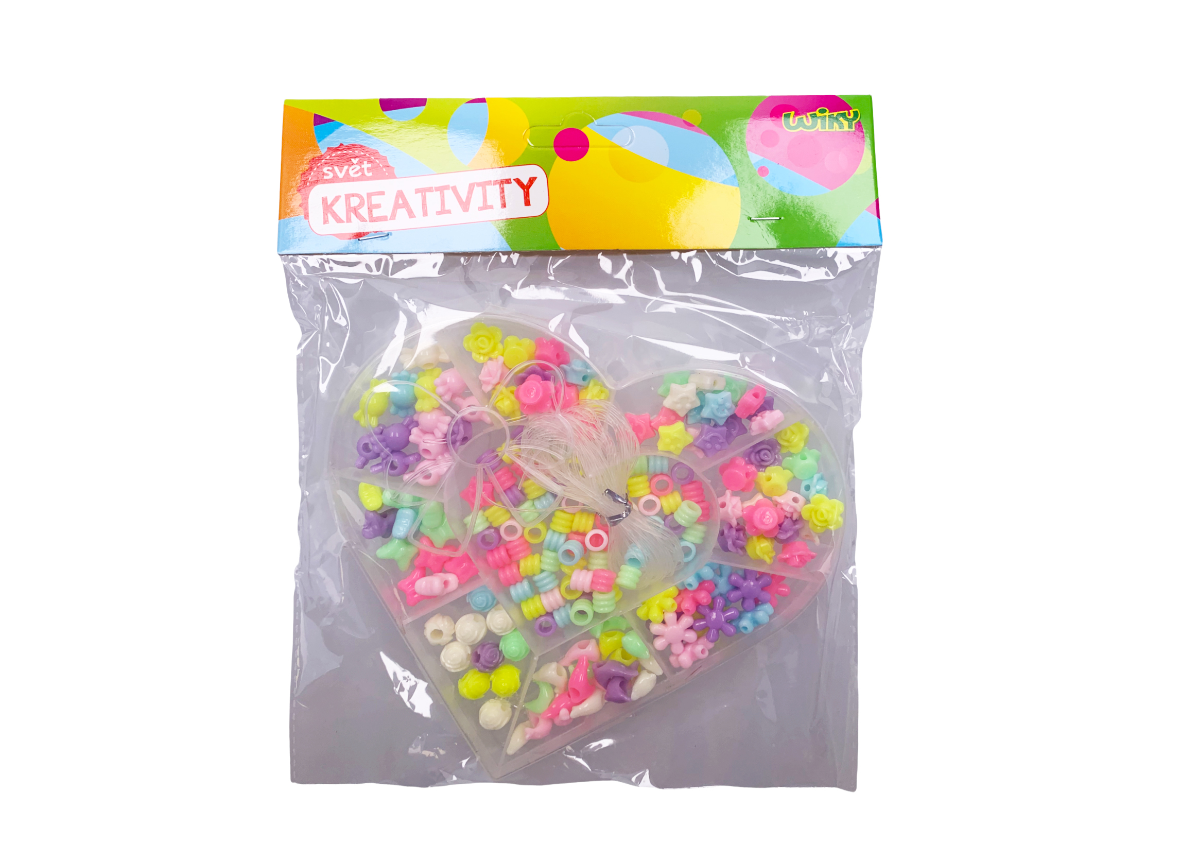 Korálkový set o hmotnosti 55g ve tvaru srdce. 9 různých druhů korálků + provázek.