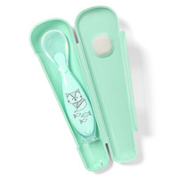 Silikonasta žlička s sesalcem v etuiju je idealna za doma, na sprehode ali na potovanju. Ima ustrezno obliko in je odlična za učenje vašega otroka, kako jesti samostojno. Izdelana je iz visokokakovostnega silikona, namenjenega stiku s hrano.