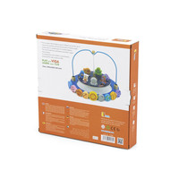 Celotna igrača je narejena iz bukovega lesa in pobarvana s škodljivimi barvami v živahnih barvah, ki pritegnejo pozornost in spodbujajo igro ter nudijo obilo zabave.