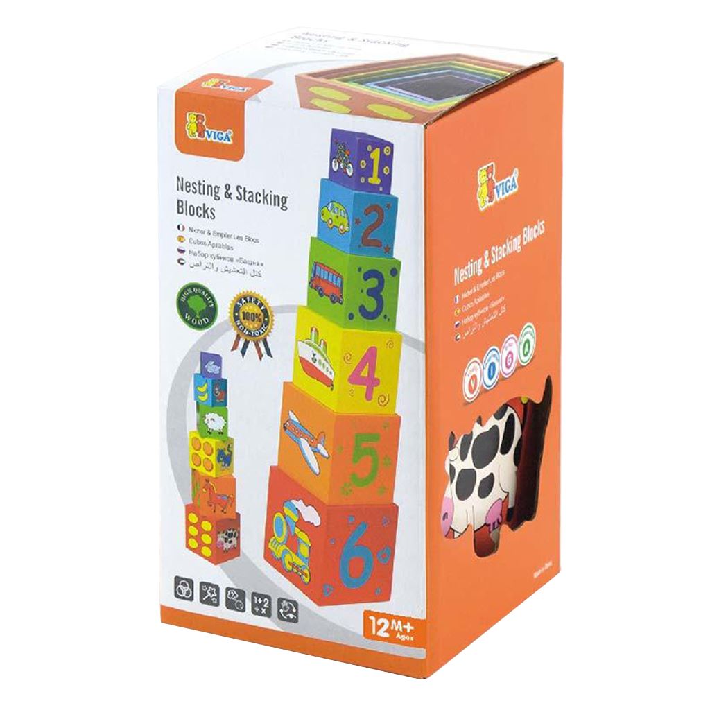 Lesena izobraževalna piramida Viga je ena najboljših igrač, ki traja dolgo časa in nudi vašemu otroku številna leta zanimive in ustvarjalne igre. Set vsebuje 6 kosov barvnih lesenih kock različnih velikosti, ki so z ene strani odprte in se zato lepo prilegajo ena v drugo. Ta fantastična igrača deluje kot didaktično pomagala. Kocke so okrašene s čudovitimi slikami živali, geometrijskih oblik, številk, barv in narave. Kocke služijo kot motorična pomoč, ki otroke uči, kako ravnati s kockami. Igrača pomaga izboljšati ročne spretnosti in spretnost, uči otroka prepoznavati oblike in barve, angažira ter razvija čut za opazovanje. Igrača je izdelana iz lakiranega lesa. Naša prednostna naloga je varnost in kvaliteta naših izdelkov, zato barve, uporabljene na igračah, niso strupene in izpolnjujejo varnostne standarde (EN71 in ASTM). Primerno za otroke od 12 mesecev. Igrača je odlična izbira kot čudovito darilo za naše najmanjše. Dimenzije igrače: 22x12x12 cm.