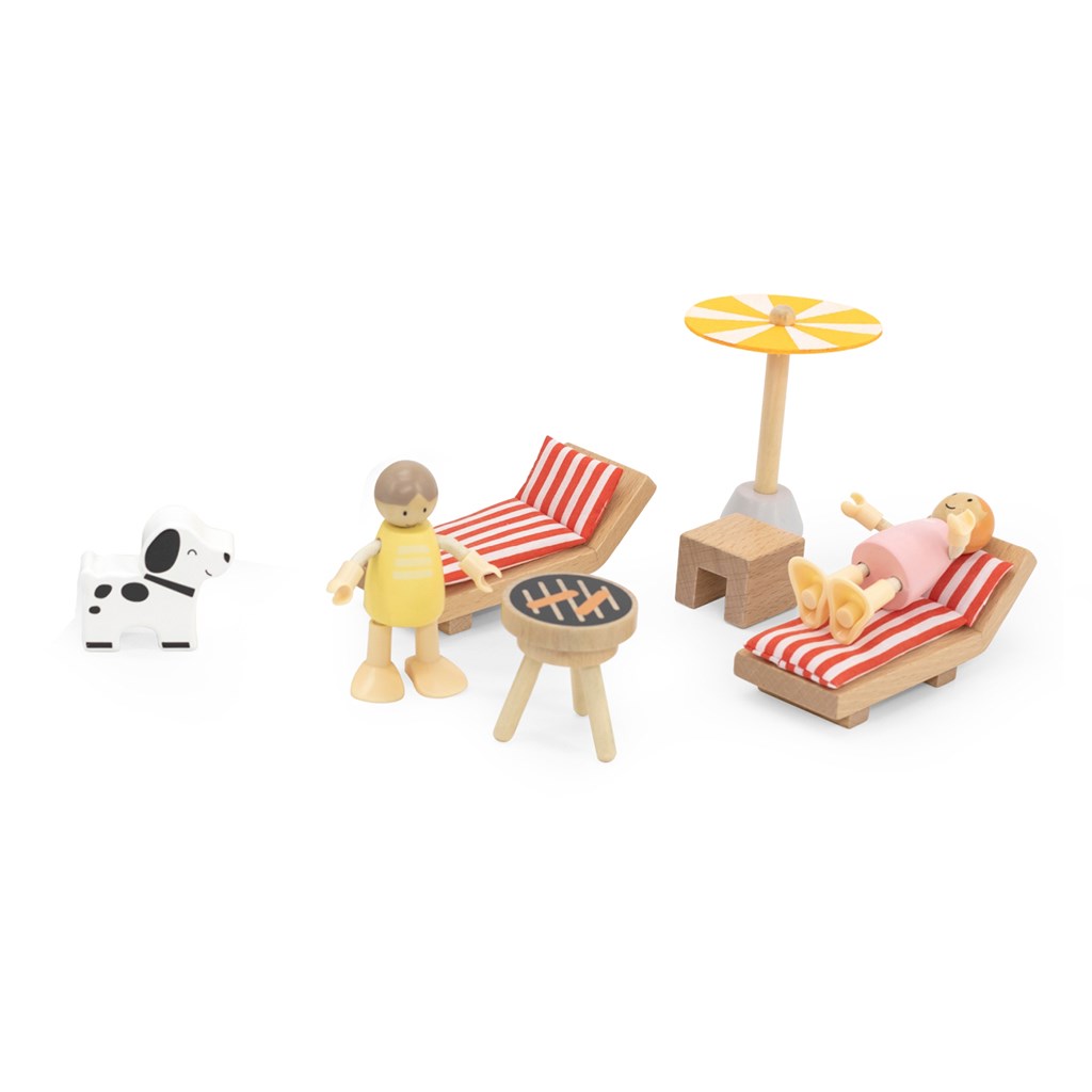 Multifunkcionalnost – set vsebuje številne dodatke (lutke, ležalnike, žar, sončnik, kužka itd.), ki ponujajo raznolike možnosti igre in zabavajo otroka dolgo časa